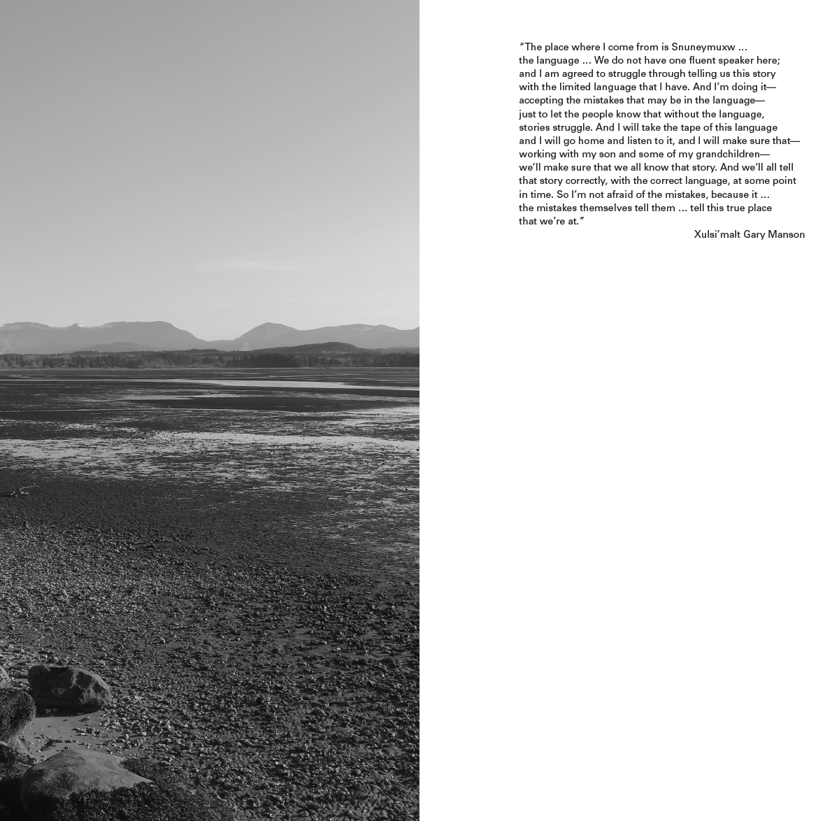 Roni Horn, E. J. Hughes, Lili Huston-Herterich, Dawn Johnston, Eleanor King, Roy Kiyooka, Joy Kogawa, Xulsi'malt Gary Manson, Max Maynard, Michele Di Menna, OrcaLab, Marcus Rediker & Liz Park, Frances Ponge, NH Pritchard, Genevieve Robertson, Marina Roy, Willie Thrasher & Linda Saddleback, Emily Luce & Klehwetua Rod Sayers, Charles H. Scott,