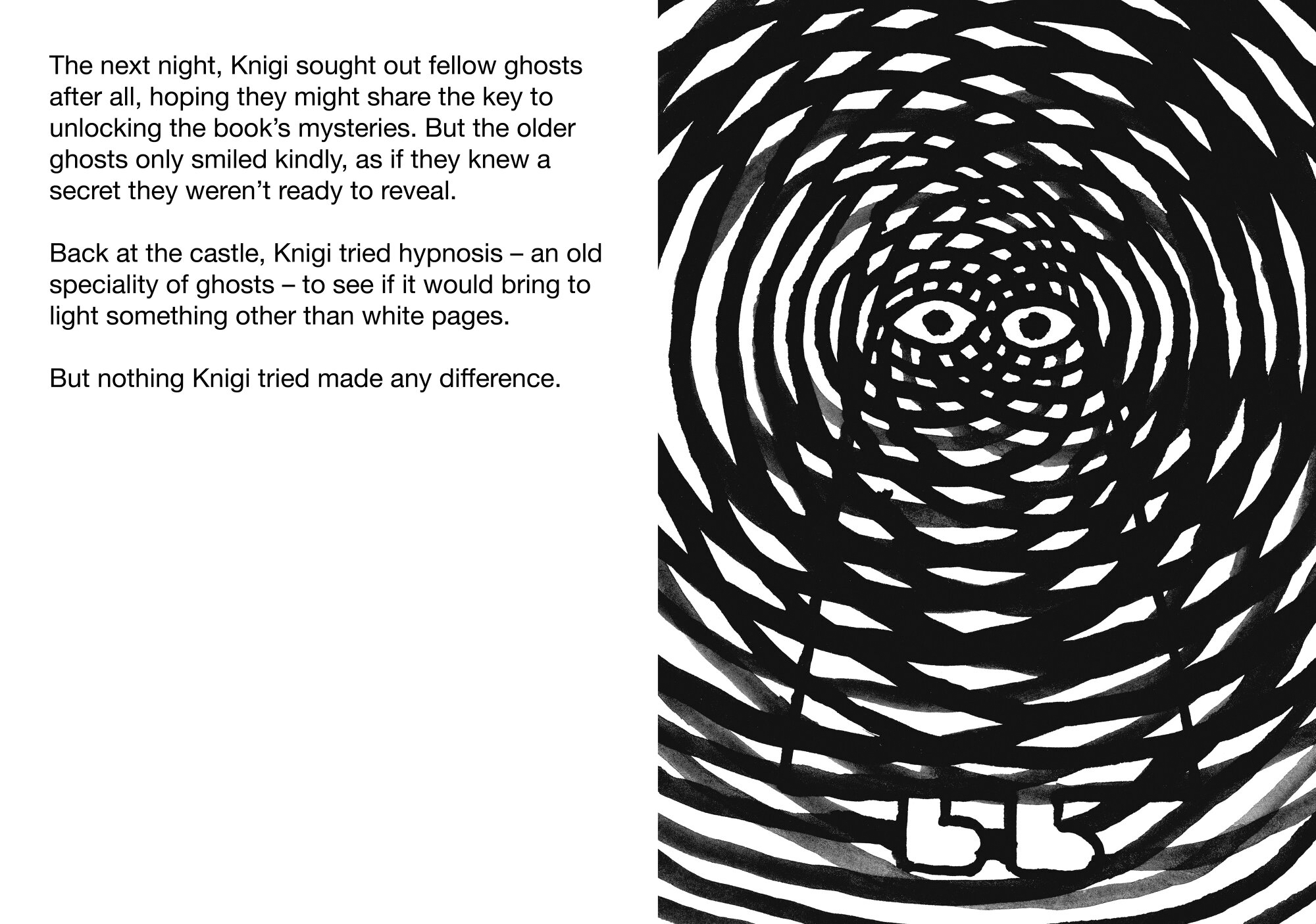 Knigi is quite young, but still at an age when human children normally learn to read. And it's the same for ghost children. ‘But something is wrong', Knigi worries. The book is absolutely white – every page, from cover to cover. Knigi is forced to embark on a journey to find out how to read.
