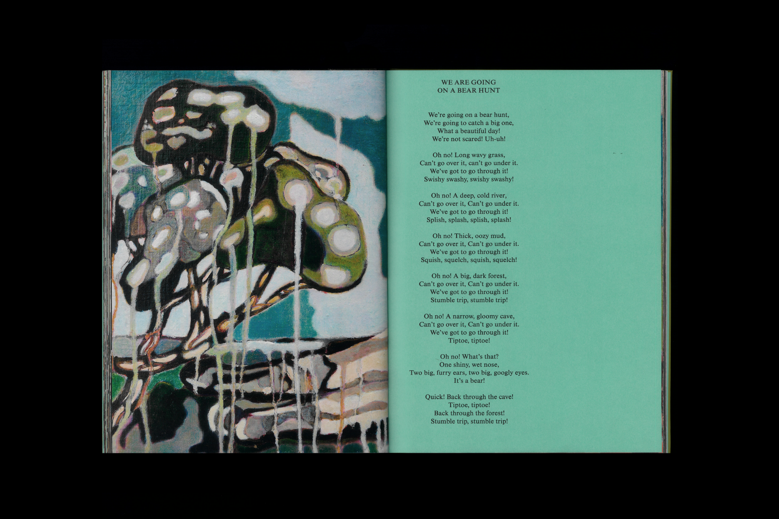 The titles of the works, inspired by traditional English nursery rhymes, and the accompanying texts take the form of ancient and surreal chants, capable of evoking both the childhood of the world and its possible future. Their language, closer to illuminated manuscripts than to linear narration, constructs a vivid imaginary world in which whirlwinds and impulses evoke the idea of original totality: at the end of this long succession of worlds, everything seems to tend towards a single, shared substance of being.