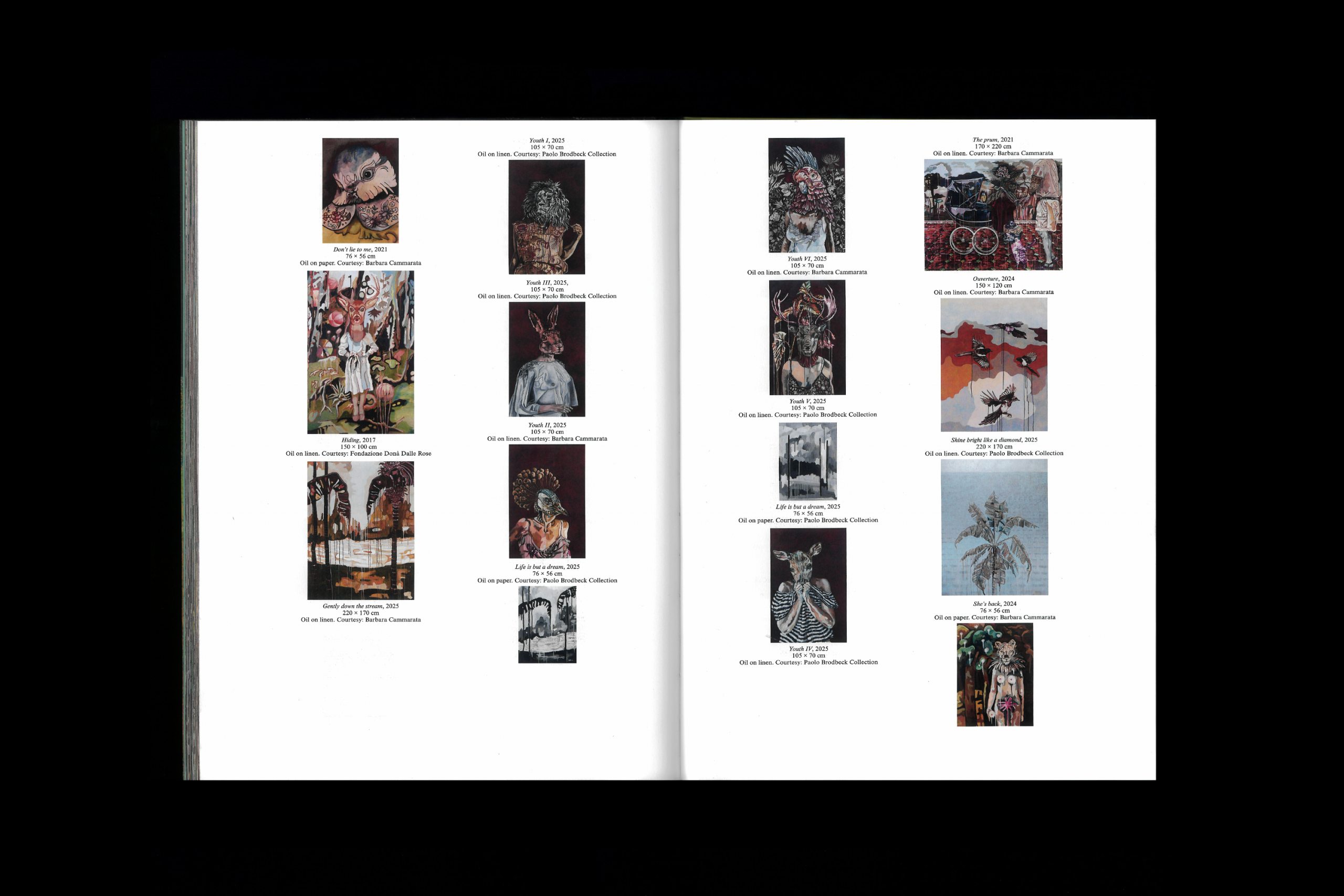 Ding Dong Bell is an invitation to cross the threshold into a world that belongs not only to the imagination, but also to the concrete possibility of a different way of inhabiting reality. In this space, details weave together landscapes and reveal characters, hinting at unexpected encounters in a continuous search for shapes and textures, in a chromatic immersion and a sequence of perspectives on a syncretic and archaic world, on an alchemical pictorial practice, where the complex figurative iconography of living beings and cosmic constellations is progressively enriched with tonal stratifications and semantic density.