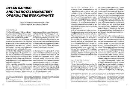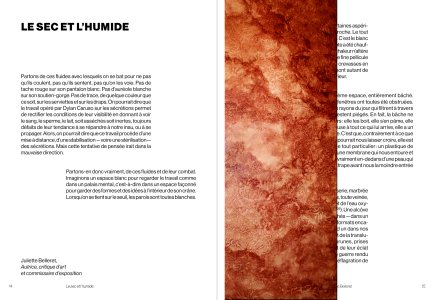 Titled η (êta)—the seventh letter of the Greek alphabet, associated with fluids and their transformation—this book looks back on a selection of works representative of the artist's last ten years of research and creation, accompanied by contributions from three authors. Juliette Belleret, exhibition curator and art critic, offers a sensitive exploration of the artist's ornamental works, which she gathers within a mental space. Fabienne Dumont, art historian specializing in feminist and queer issues, situates the artist's practice within the long history of the dissociation between masculinity and dominant power. Finally, Magali Briat-Philippe, art historian and curator, reveals the multiple symbolic dialogues woven between the works acquired by the Museum of the Royal Monastery of Brou and the history of its founder. All three provide unique perspectives on the social, historical, and cultural issues that drive the artist's practice.