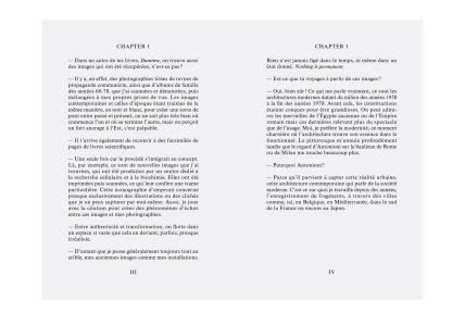 The editorial space is conceived and practised by Mazzoni as a genuine exhibition space whose display and reading he nevertheless replays. The intrinsic qualities of the editorial object, variations of paper, of grammage and of printing within a unity of format and of graphic design, contribute as much as the in situ installation to creating with a rare aptness the conditions for the appearance of an elliptic narrativisation." — Christine Jamart
