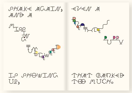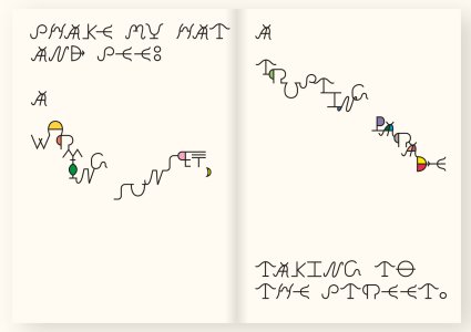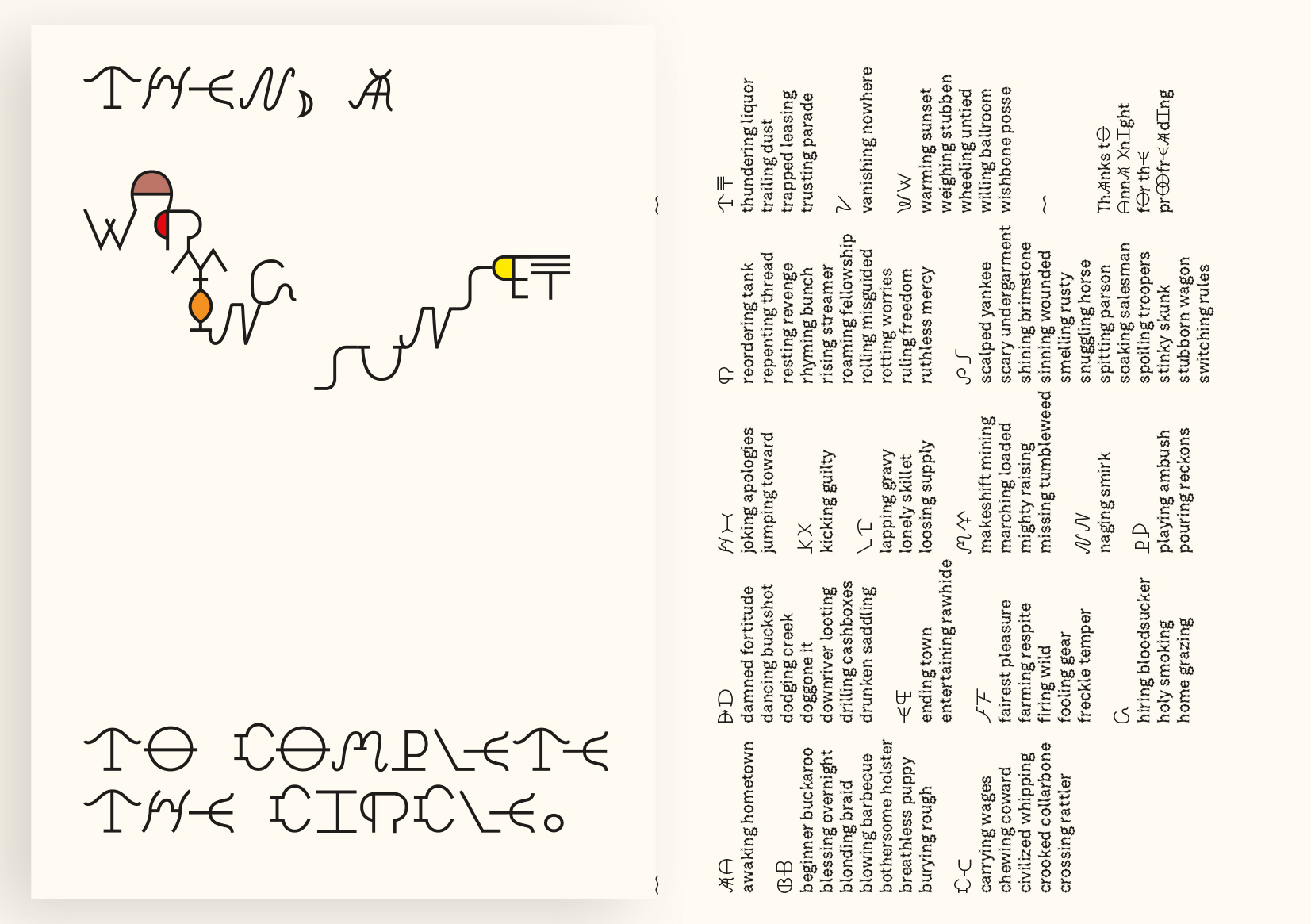 The first issue in a collection of typographic specimens, each inviting a designer to create a fictional story around one of their typefaces, this volume is by Grégoire Romanet, who has repurposed 18th-century Texas Cattle Brand symbols to create a typeface. The accompanying story—a collage of words taken from old Westerns—is a poetic and surreal text, rich in imagery, which borrows from noir Westerns while cultivating a certain absurdity.