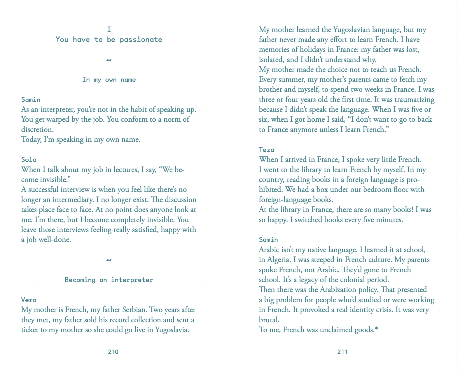 An artistic exploration of the political and emotional stakes of translation in the context of asylum law, through the lens of rarely heard testimonies: those of interpreters.