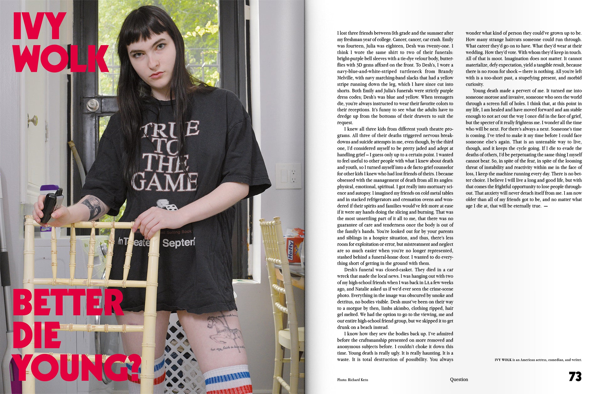 Featuring a Zoomer's guide to the Slopgeneration; an essay of on being young at art in the Instagram age; a rundown of contemporary art's nepo babies; reality checks on culture's obsessions with youth and dying young; portraits of couture-sculptor Tenant of Culture, Turner Prize-nominated photographer Rene Matić, e-waste sculptor Brian Oakes, and Austrian painter Lukas Posch; send-ups of teenage fiction's ecstatic weirdness and youth-quakers' political promise; a critique from Silicon Valley of the industrialization of young risk-taking; art's perfect Los Angeles metaphor; and a splash of back-page advice: "You shouldn't be fun at twenty-one. You should be tortured."