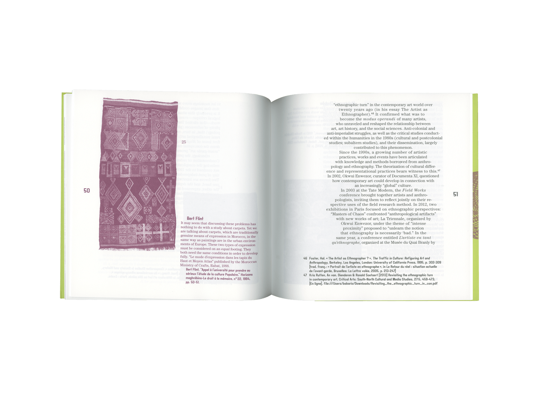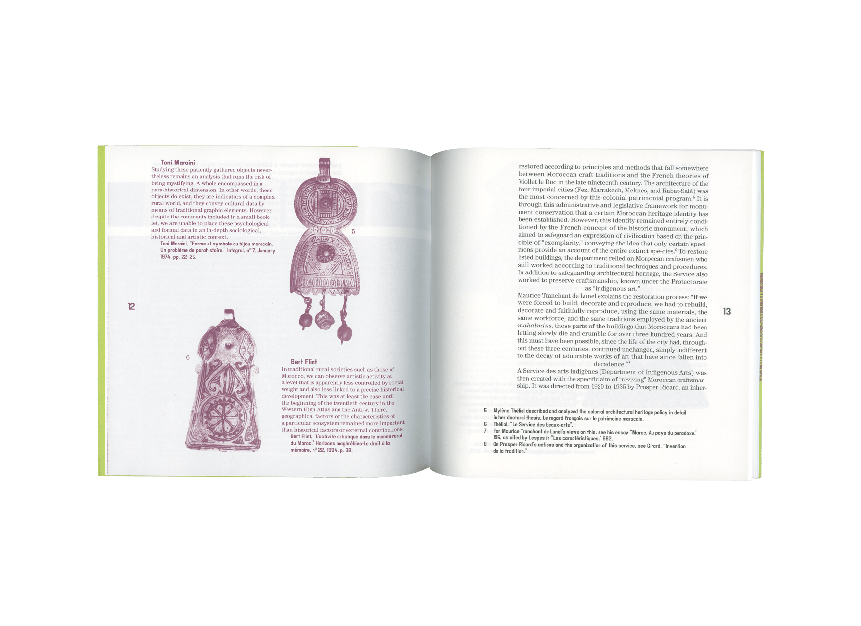 Maghreb Art accompanied the first attempts to structure a new field of knowledge, situated at the intersection of artistic and pedagogical experimentation, anthropology, material culture, and art history. Over the three years of existence, the journal Maghreb Art established itself as a pedagogical tool and as a fully active witness to the interaction between experimentation and theory, which forged the avant-garde reputation of the school in the wake of Morocco's independence.