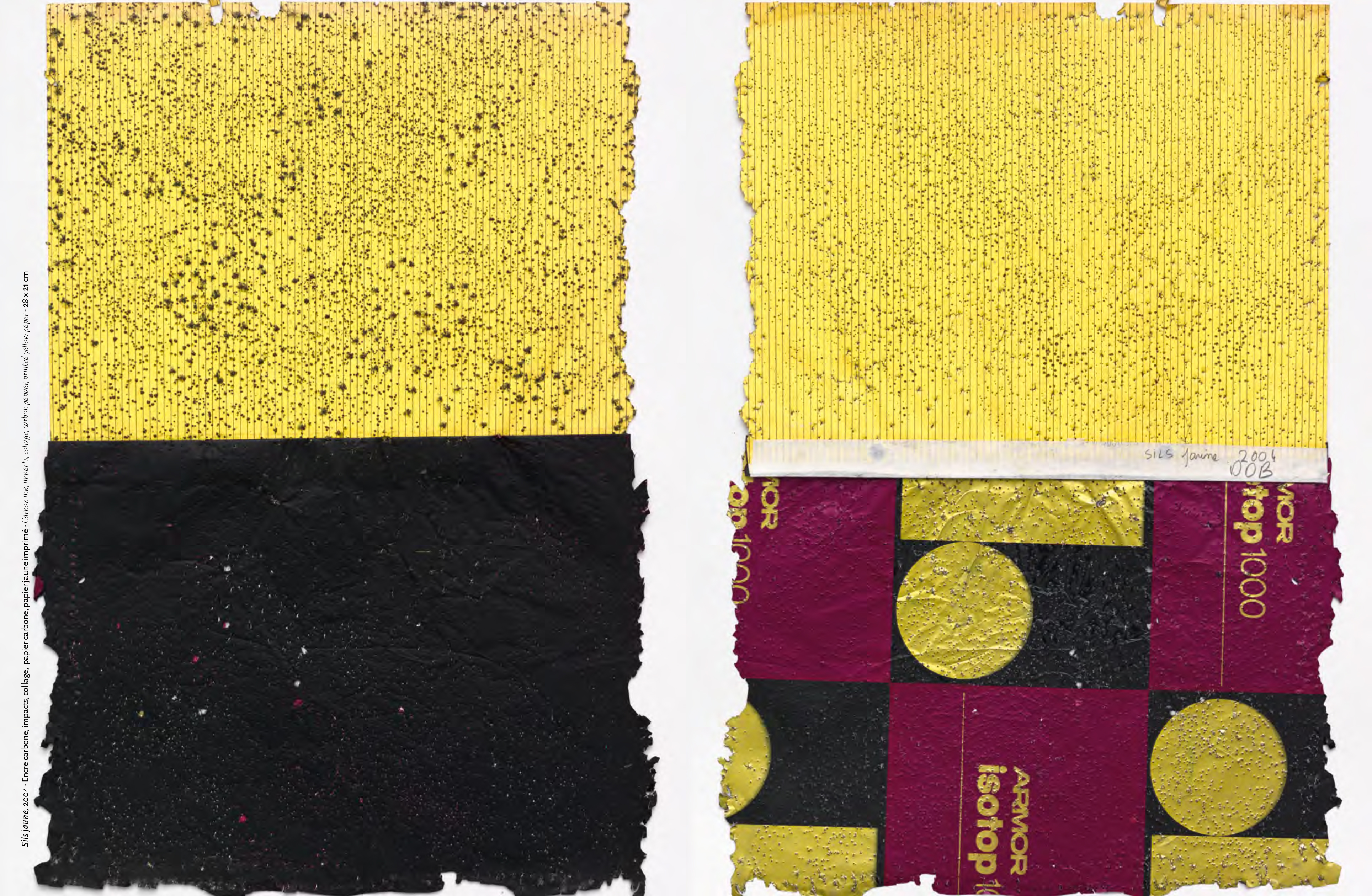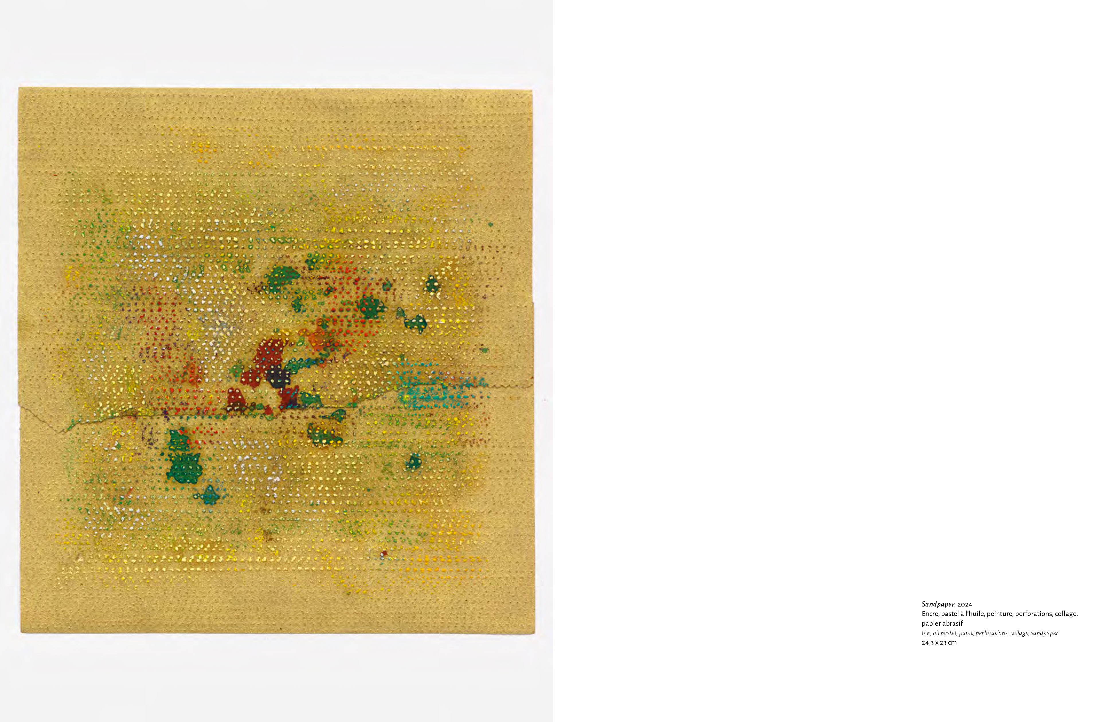French artist Dominique De Beir (born 1964) uses unusual tools to cover paper supports with perforations. She pursues the vital energy of her creative process and impulsive acts without constraints until the surface itself disappears for the benefit of its own depth. By the repetitive and relentless character of her actions, the artist gives to her work a ritual and choreographic dimension. Her work has been exhibited in France, the Netherlands, Italy, Great Britain, and Germany, and her works are included in a number of public and private European collections.