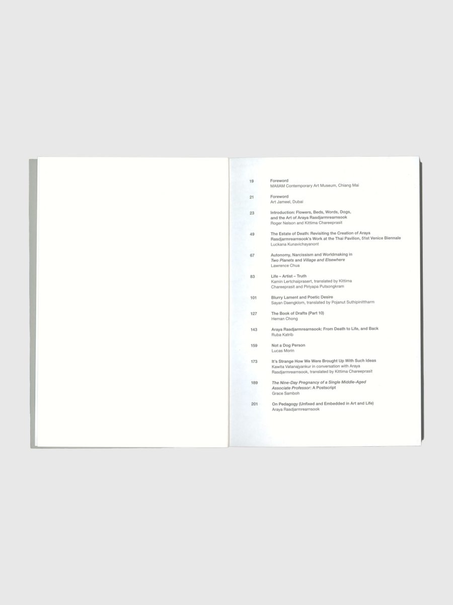 Araya Rasdjarmrearnsook: The Bouquet and the Wreath offers an expansive and generously illustrated response to the artist's multifaceted practice, with contributions from artists, curators and scholars. Alongside critical examinations of Rasdjarmrearnsook's practice in relation to Buddhist thought and global contemporary art histories, the book also studies her significant contributions to art education in Thailand and reveals her enduring impact across Southeast Asia and beyond.