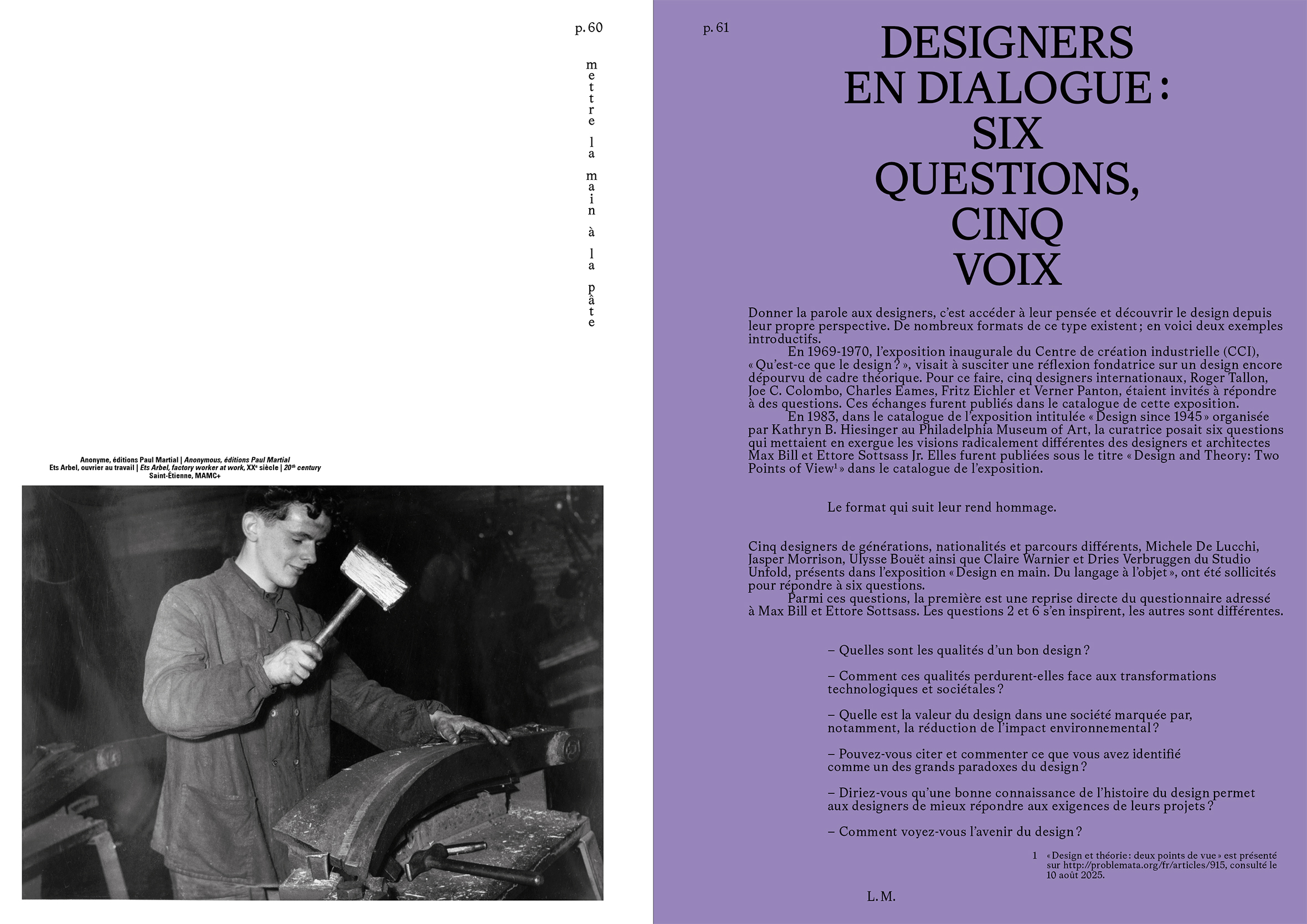 Contributions by Laurence Mauderli, Tim Ingold, Aziza Gril-Mariotte, Donna Loveday, Michele De Lucchi, Jasper Morrison, Ulysse Bouët, Studio Unfold, Lola Carrel, Joris Thomas.