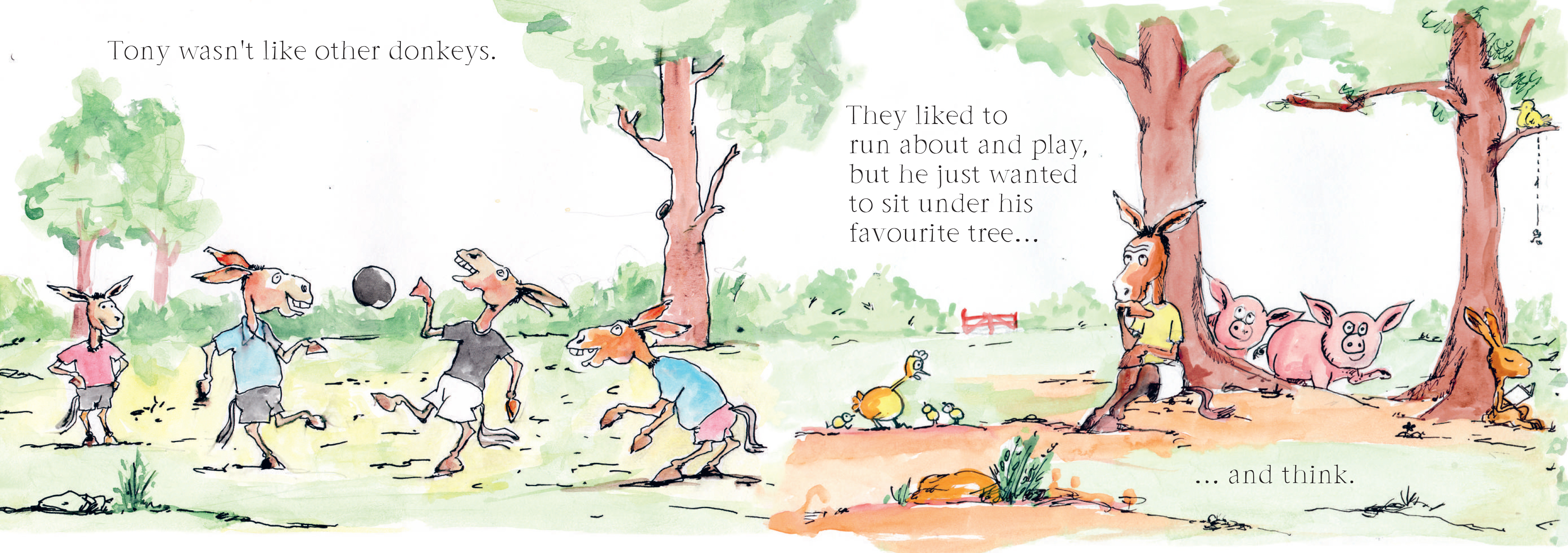 The story of Tony the Donkey! A children's book illustrated by Artur Varela (1937–2017), completed shortly before the Portuguese artist's death, adapted and published posthumously by Daisy Publishing.