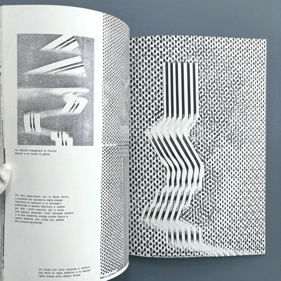 It was on this occasion that Xerografia: Documentazione sull'uso creativo delle macchine Rank Xerox (Xerography: Documentation on the Creative Use of Rank Xerox Machines) was published, providing instructions on how to repurpose the commercial machine to create original images and works of art.