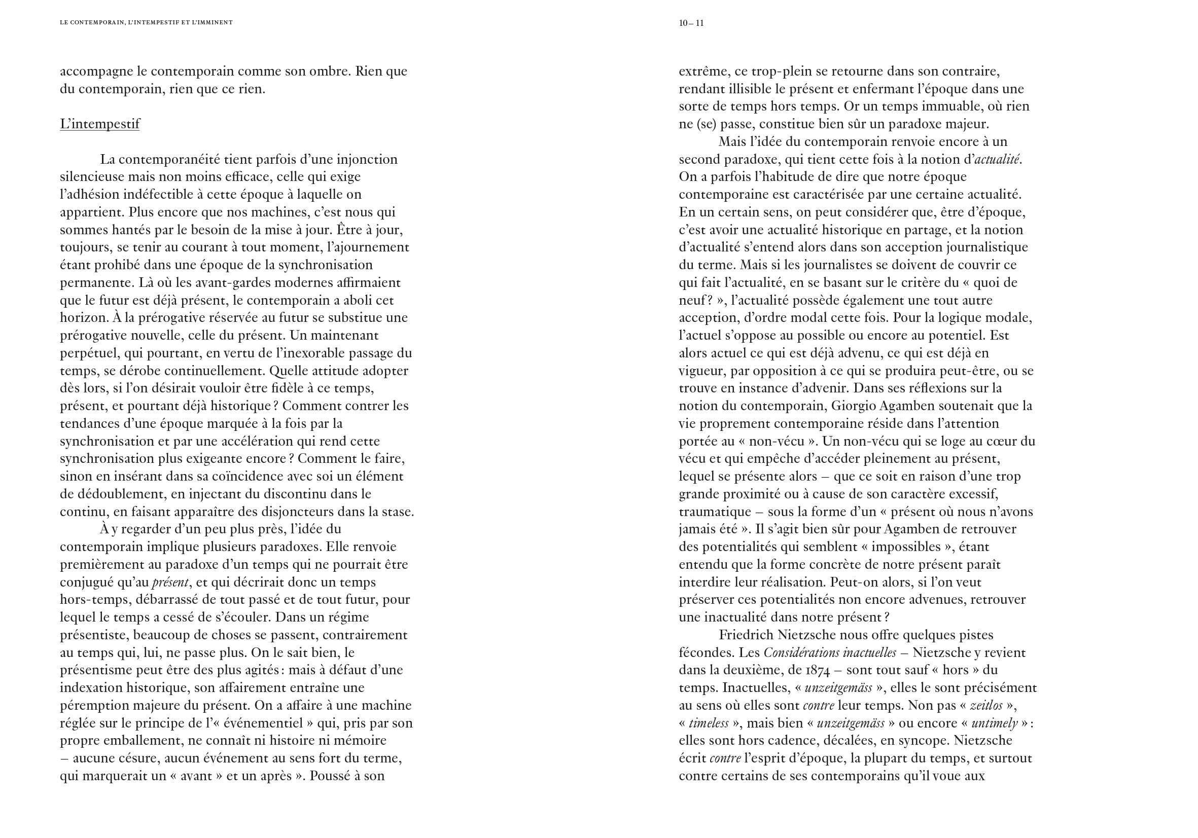 Le contemporain, l'intempestif et l'imminent
