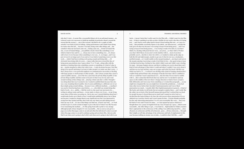 Félicia Atkinson, Julien Bismuth, and the curator Sophie Kaplan, revolving around questions of narrative, listening and improvisation, centered around a long unpublished transcript of a talk poem by