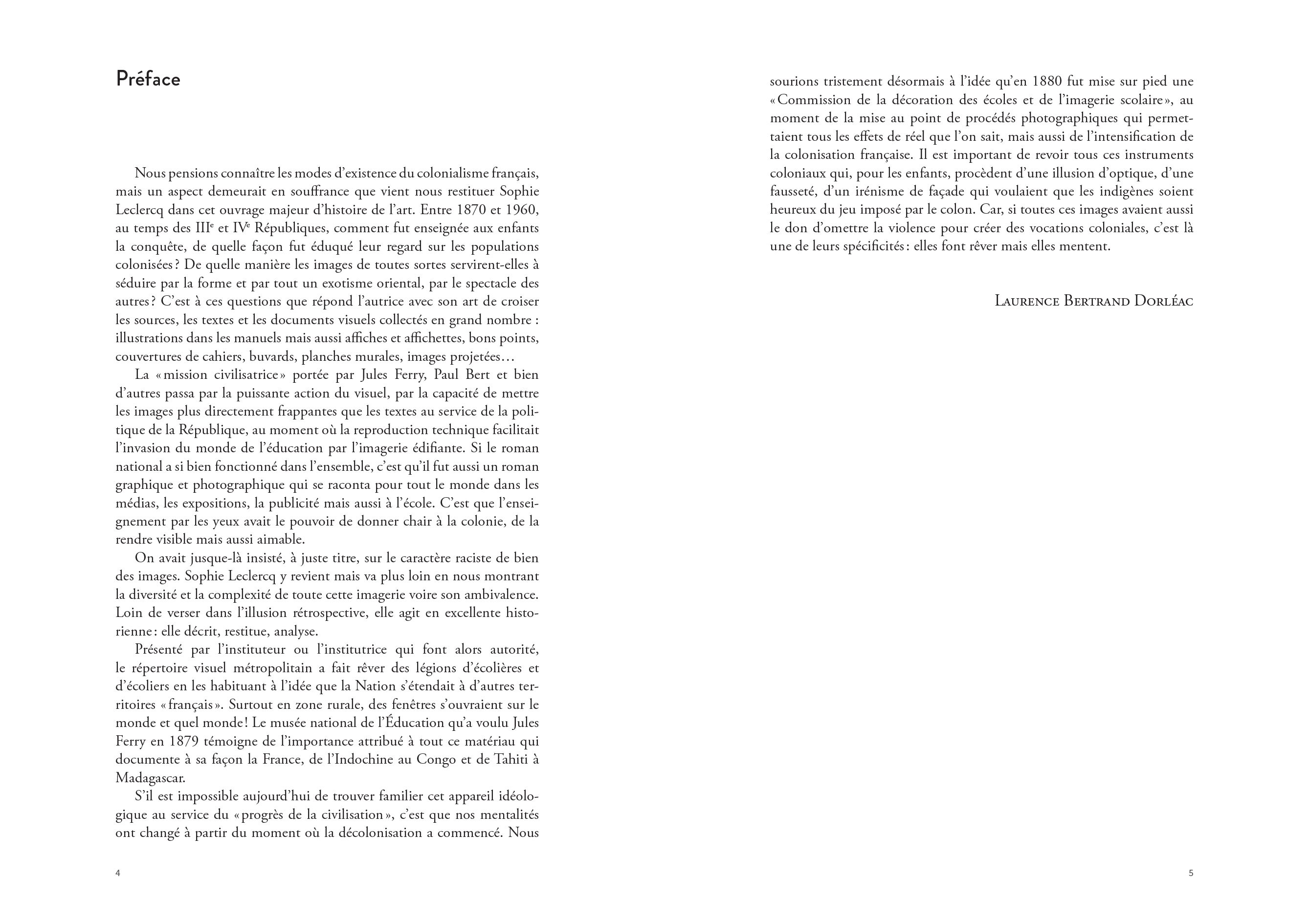 Colonial images, educational images. A major study in art history in which Sophie Leclercq, drawing on and analyzing multiple sources, texts, and visual documents, sheds light on a blind spot in French colonialism: how, between 1870 and 1960, children were taught about colonial conquest through edifying imagery, and how their view of colonized populations was shaped?