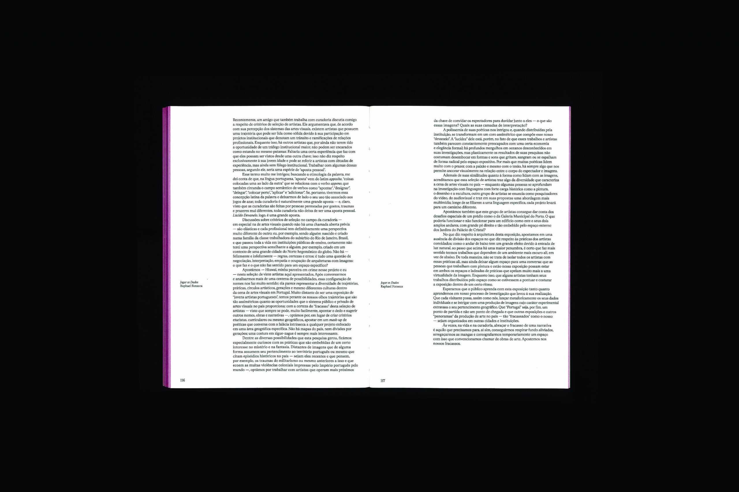Publié à l'occasion de l'exposition éponyme à la Galerie municipale de Porto de juillet à octobre 2025, avec Ana Vidigal, André Sousa, Andreia Santana, Belén Uriel, Dayana Lucas, Francisco Trêpa, Gonçalo Sena, Ilídio Candja, Joana Escoval, João Gabriel, João Pedro Vale + Nuno Alexandre Ferreira, Mané Pacheco, Mariana Caló & Francisco Queimadela, Sara Bichão, Sara Chang Yan, Silvestre Pestana, Sofia Borges, Teresa Murta, Tiago Madaleno, Tiago Mestre.