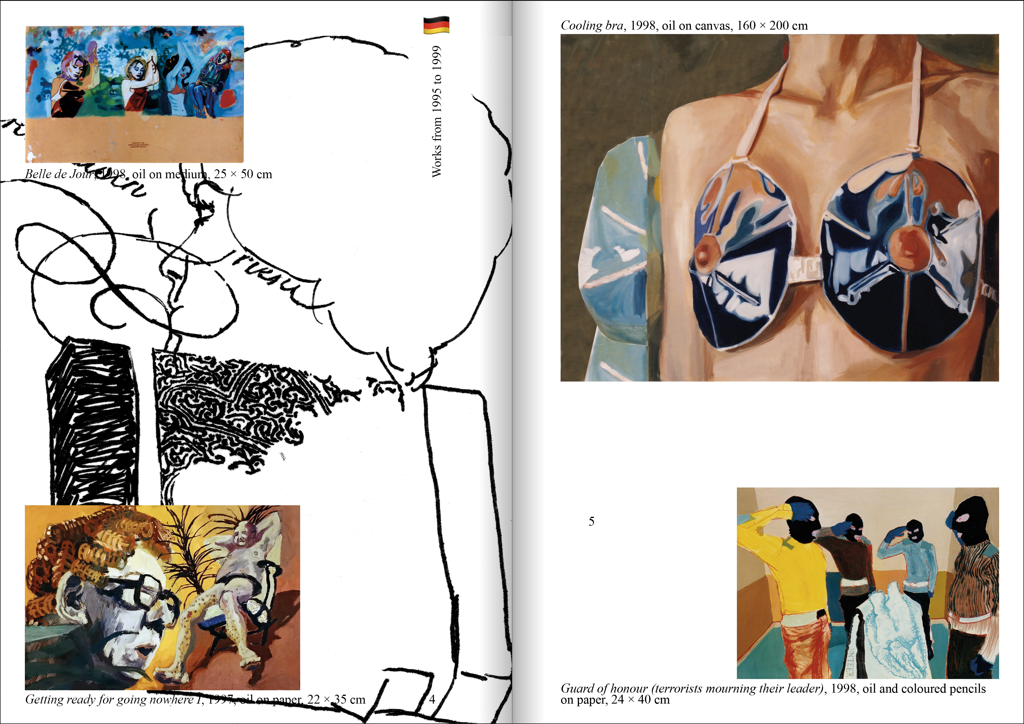Cette première monographie retrace trente années de pratique en Allemagne, à Londres et en France. Elle réunit reproductions, vues d'expositions et essais, et présente également seize peintures spécialement conçues pour l'occasion, imprimées sur un papier offset. Telles des poupées russes, elles créent une mise en abyme de la fabrication du livre, brouillant la frontière entre documentation et œuvre.