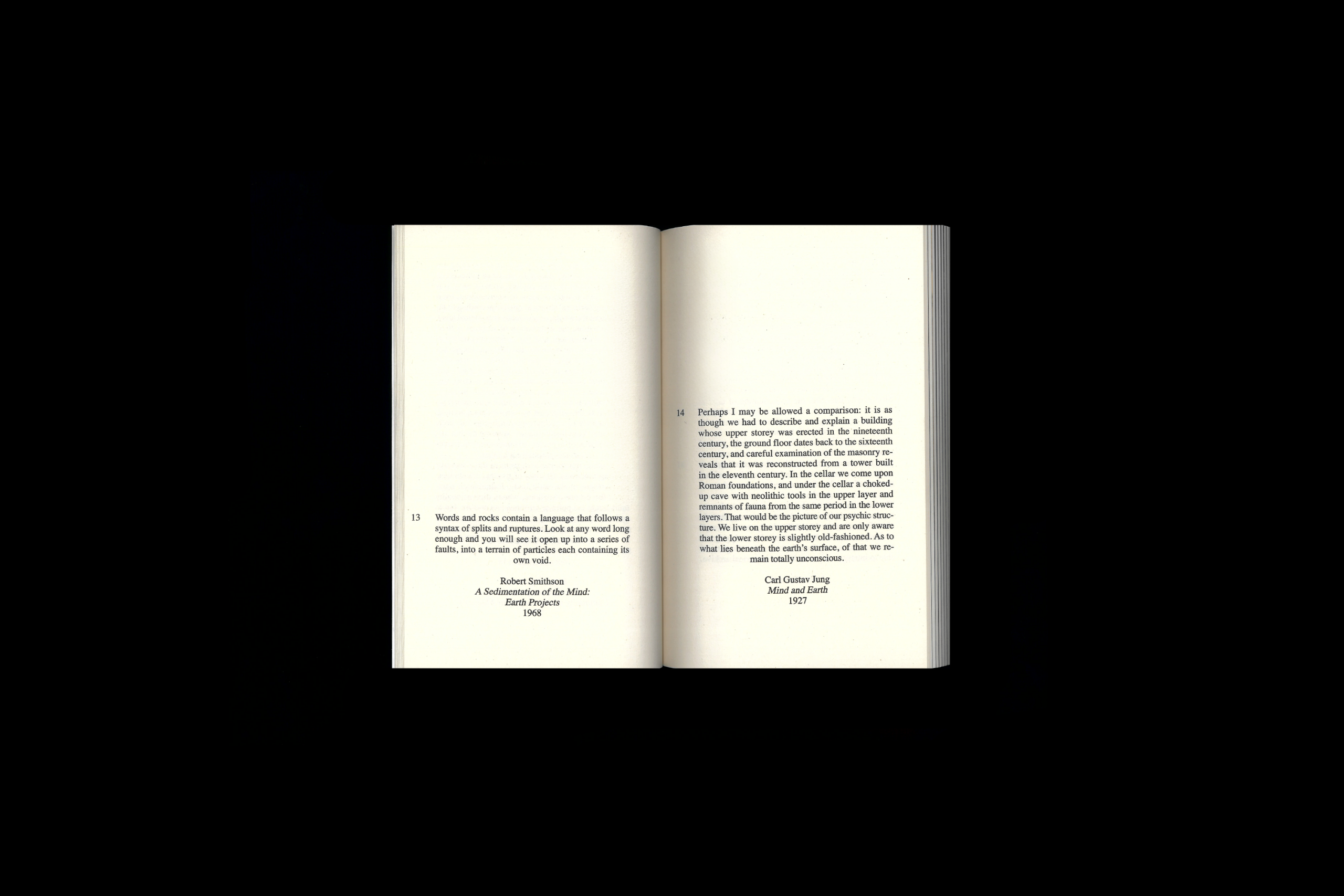 Un livre d'artiste composé de fragments de textes issus de différentes époques et contextes – littéraires, science-fiction, philosophiques, scientifiques – tous centrés sur le thème du monde souterrain.