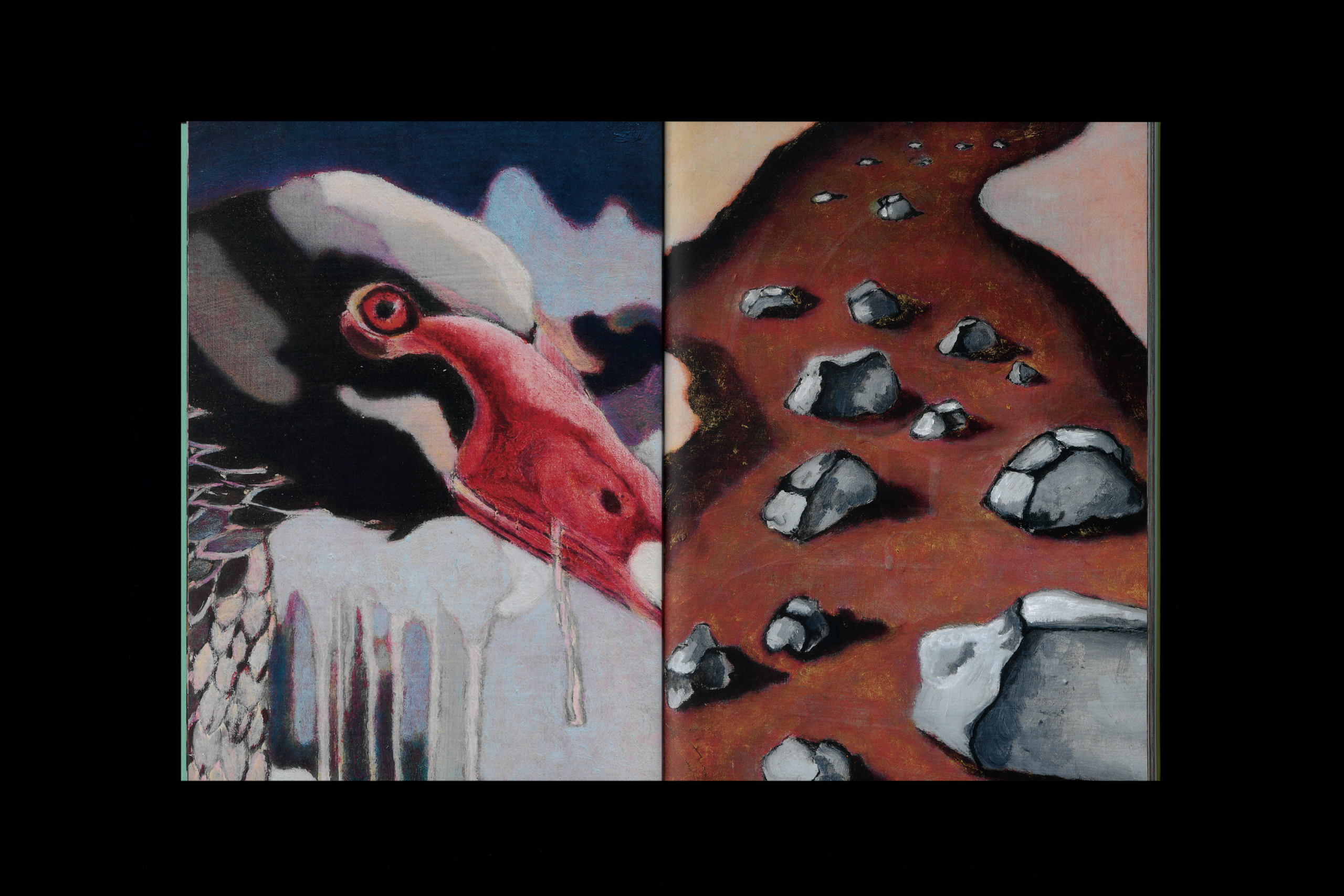 Ding Dong Bell is an invitation to cross the threshold into a world that belongs not only to the imagination, but also to the concrete possibility of a different way of inhabiting reality. In this space, details weave together landscapes and reveal characters, hinting at unexpected encounters in a continuous search for shapes and textures, in a chromatic immersion and a sequence of perspectives on a syncretic and archaic world, on an alchemical pictorial practice, where the complex figurative iconography of living beings and cosmic constellations is progressively enriched with tonal stratifications and semantic density.