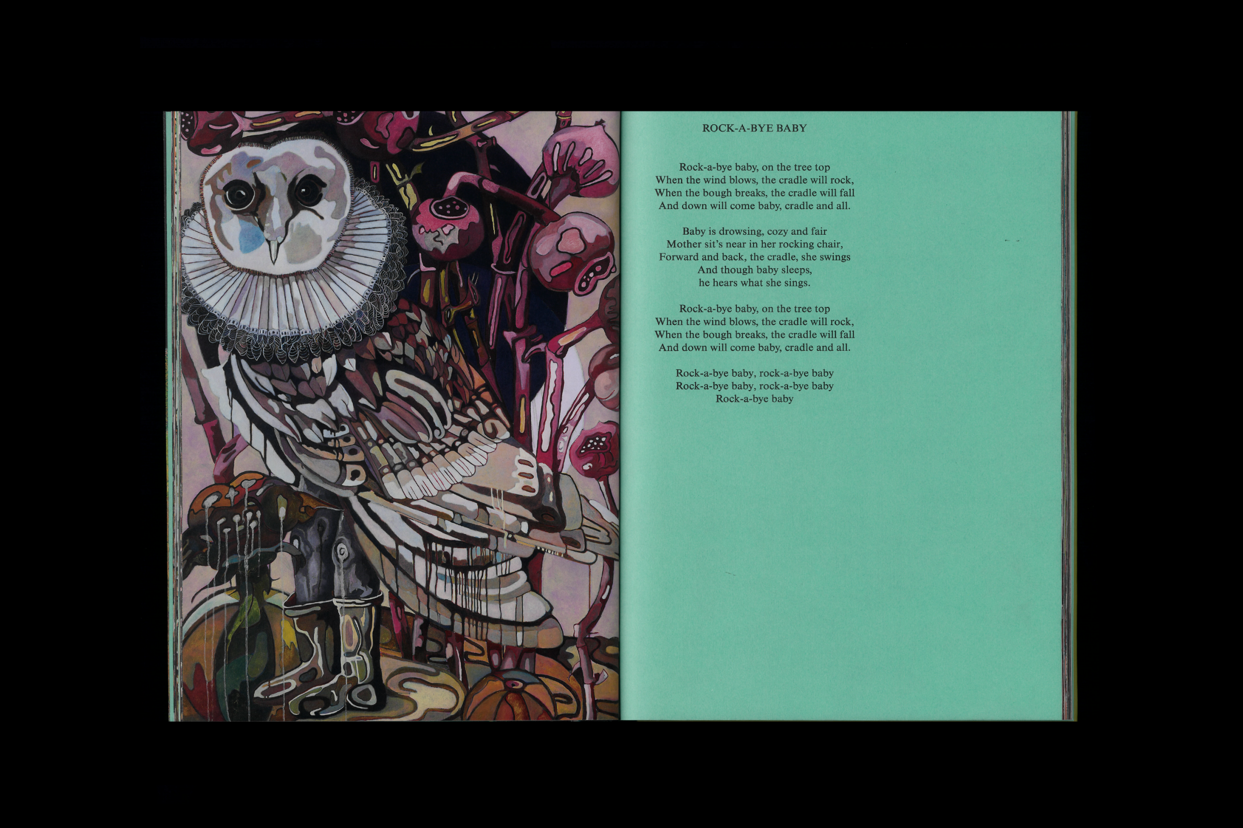 The titles of the works, inspired by traditional English nursery rhymes, and the accompanying texts take the form of ancient and surreal chants, capable of evoking both the childhood of the world and its possible future. Their language, closer to illuminated manuscripts than to linear narration, constructs a vivid imaginary world in which whirlwinds and impulses evoke the idea of original totality: at the end of this long succession of worlds, everything seems to tend towards a single, shared substance of being.