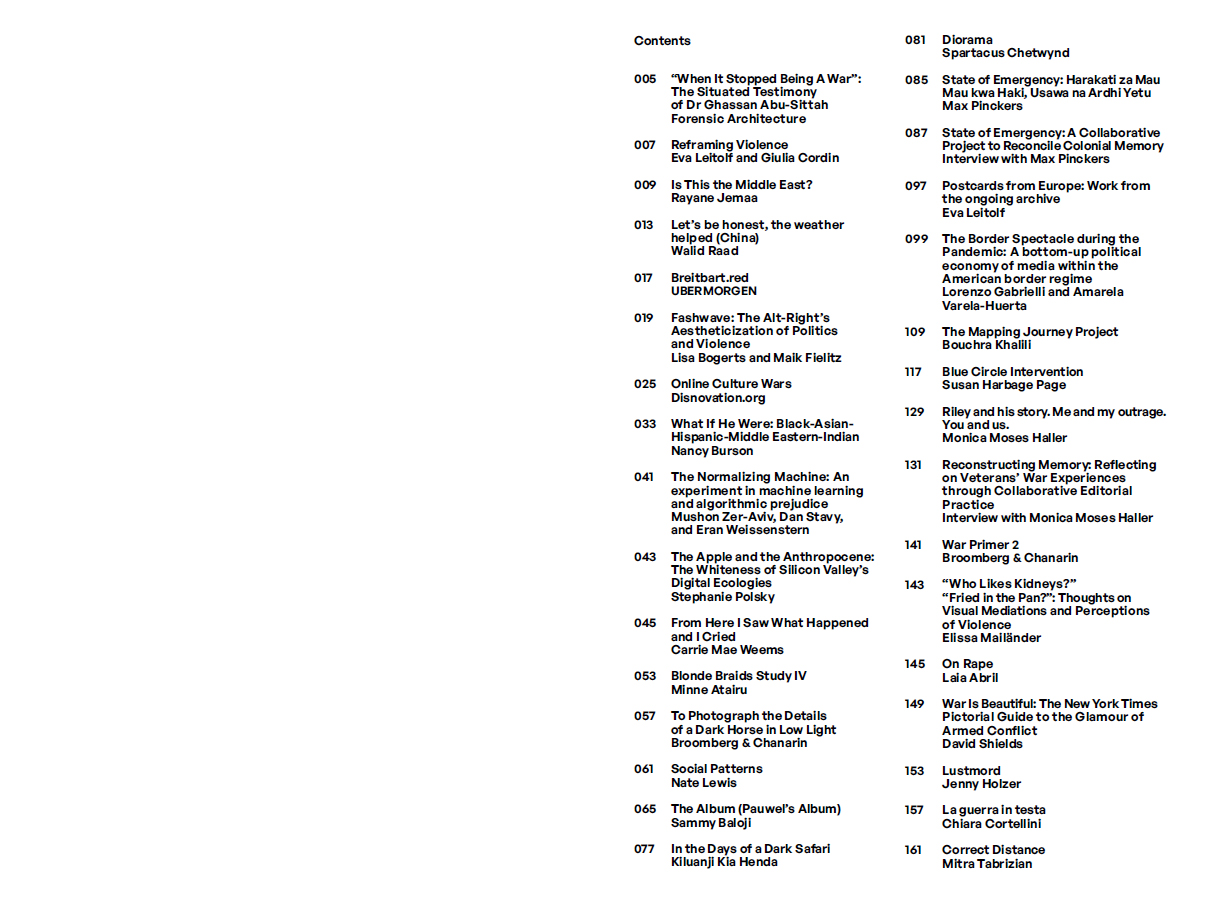 Entretiens avec / textes de by Roland Bleiker & Emma Hutchison, Lisa Bogerts & Maik Fielitz, Lorenzo Gabrielli & Amarela Varela-Huerta, Monica M. Haller, Max Pinckers, Mark T. Reinhardt, Stephanie Polsky, Elisa Mailänder.