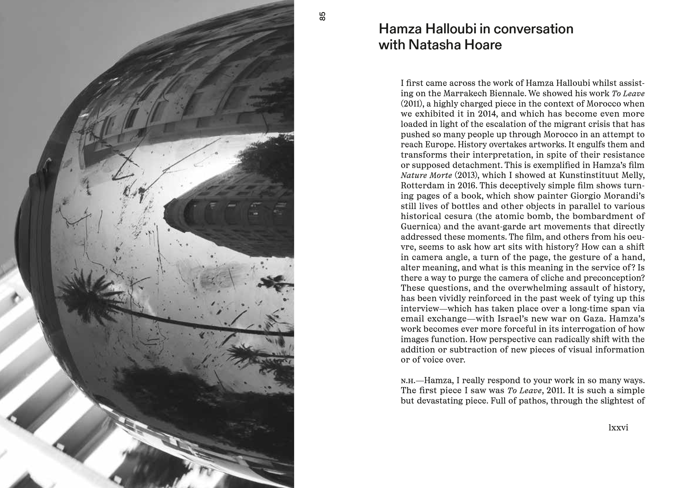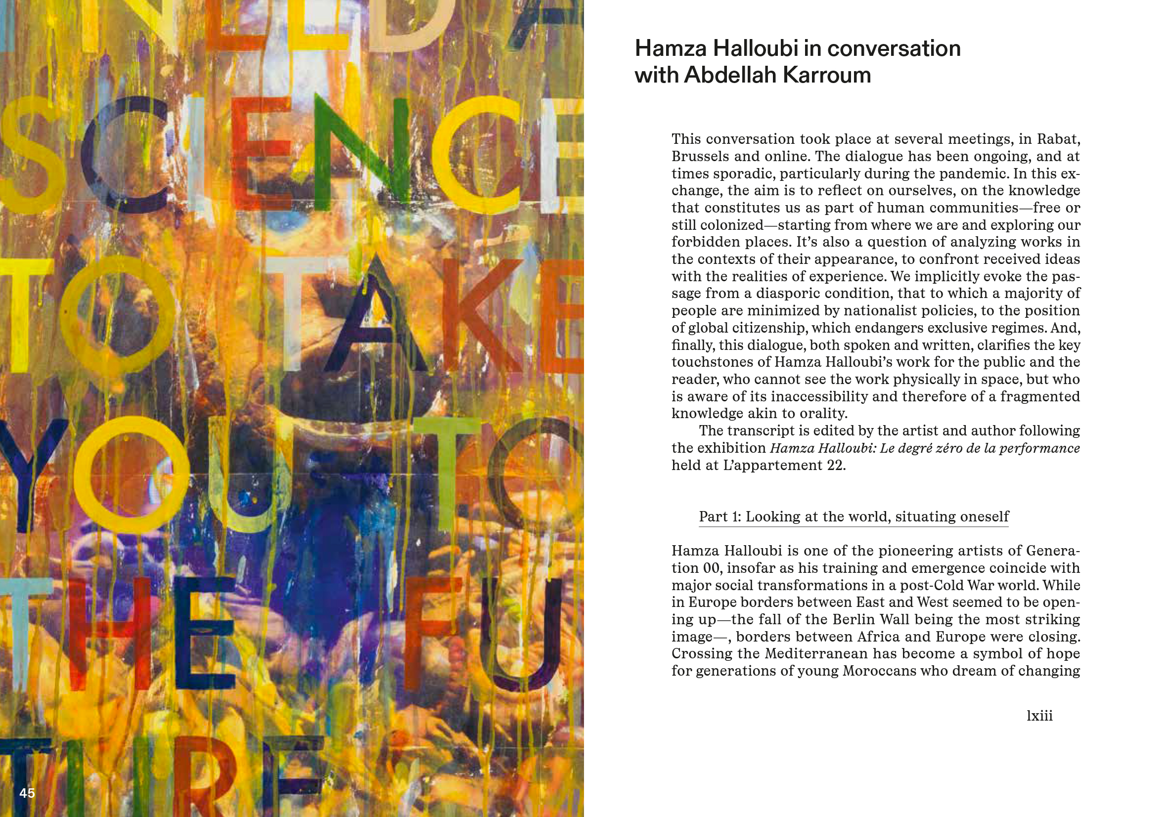 Hamza Halloubi (né en 1982 à Tanger, Maroc, vit et travaille entre Bruxelles, Tanger et Amsterdam) est un artiste pluridisciplinaire qui se concentre sur la vidéo et la peinture.