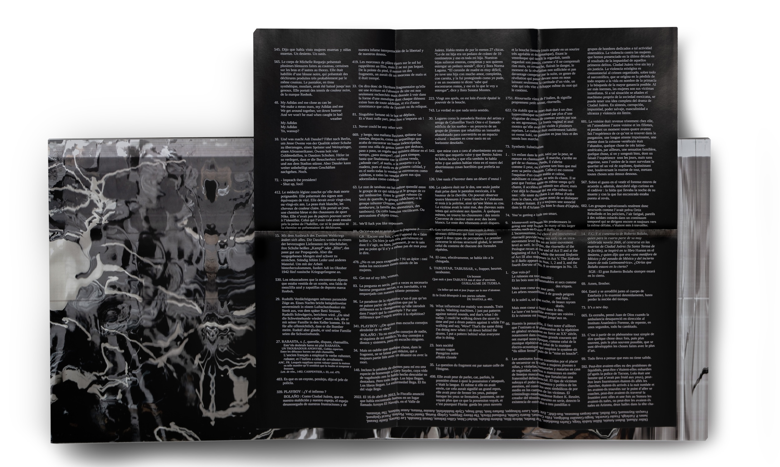 Au centre, une spirale de récits. Une fanfare funèbre, un rap privé de voix, des scènes d'absence et de violence, et surtout un texte brut et presque insoutenable, extrait de 2666 de Roberto Bolaño. Sous forme d'autopsies interminables, Bolaño expose les conséquences d'un féminicide bien réel et donne corps à un mal autour duquel son œuvre gravite. Ce fragment, asséché et dépouillé, est la seule portion du roman à apparaître dans la pièce. Il en constitue l'axe, autour duquel le parcours sonore s'enroule, s'élève ou s'effondre.