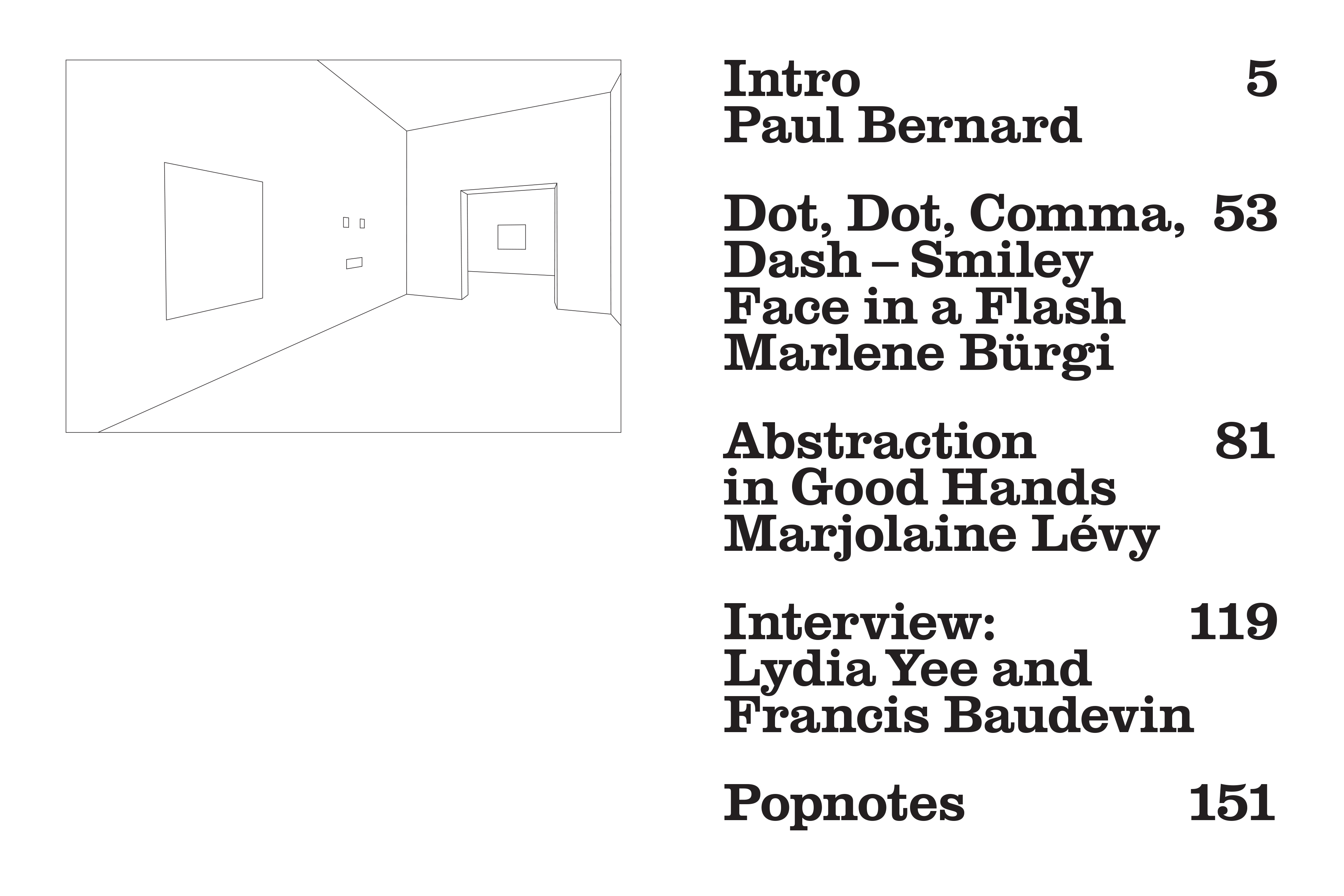 Marjolaine Lévy, une étude de cas de la commissaire et historienne suisse Marlene Bürgi sur la relation entre l'émoji smiley et les peintures murales réalisées par l'artiste pour son exposition à Bienne, ainsi qu'une longue conversation avec la critique d'art et commissaire londonienne Lydia Yee.