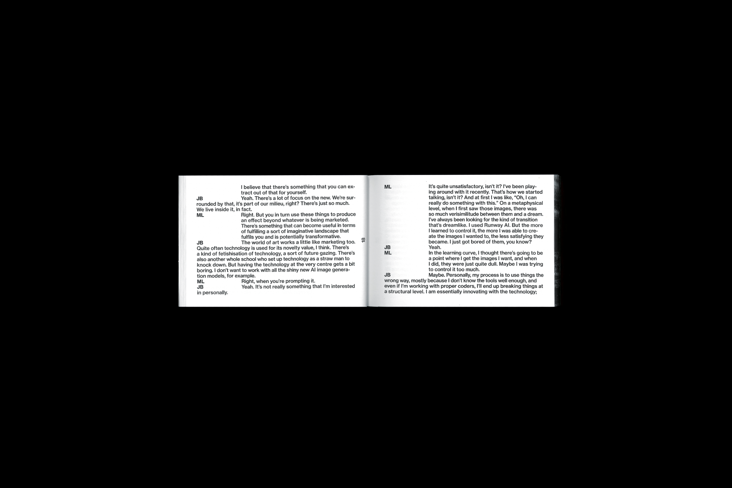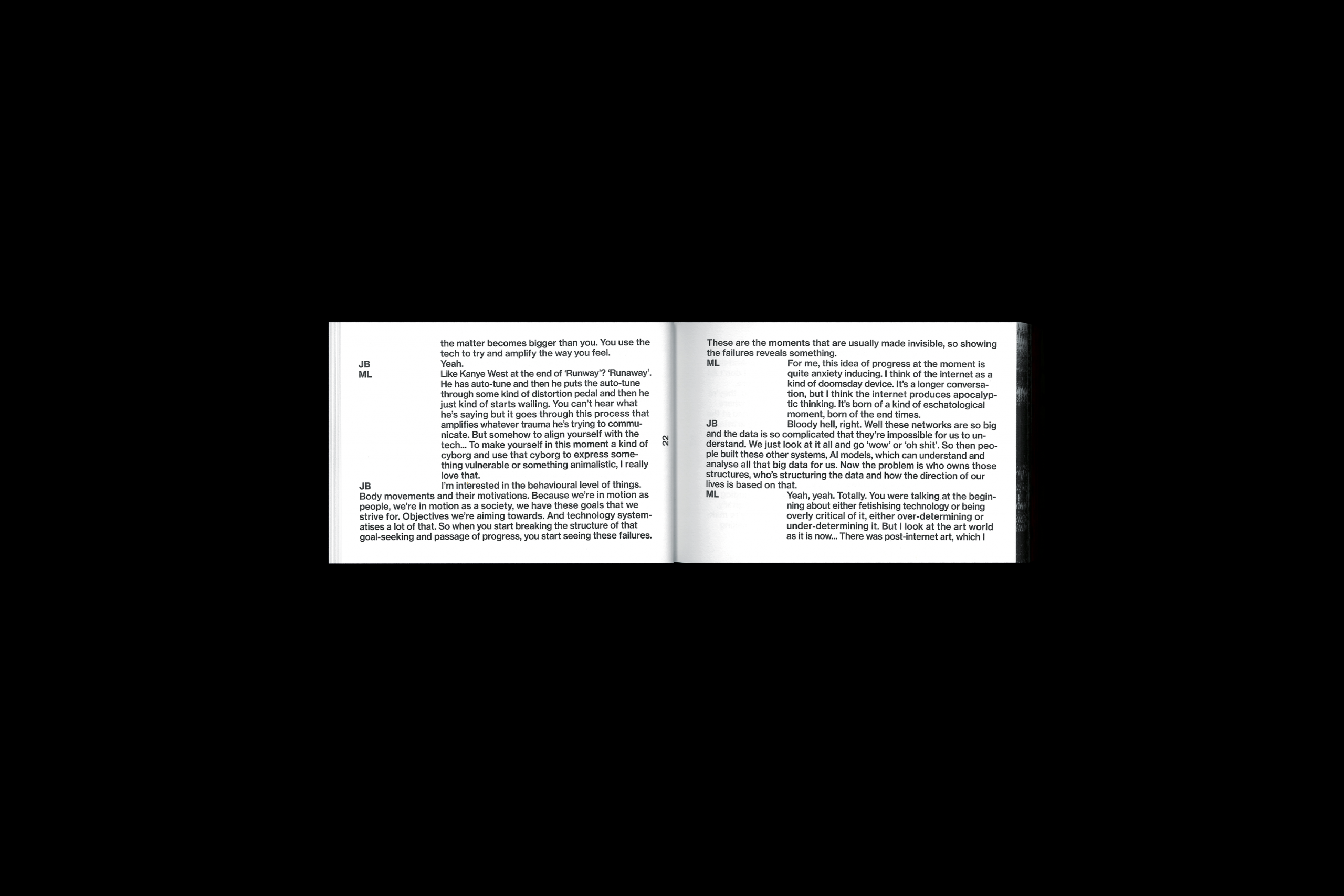 La publication Half Cheetah, conçue comme un flip book, traduit cette séquence infinie en version imprimée et offre une compréhension plus approfondie du projet grâce à un texte de la commissaire et critique Bronac Ferran et à une conversation entre l'artiste et Mark Leckey.