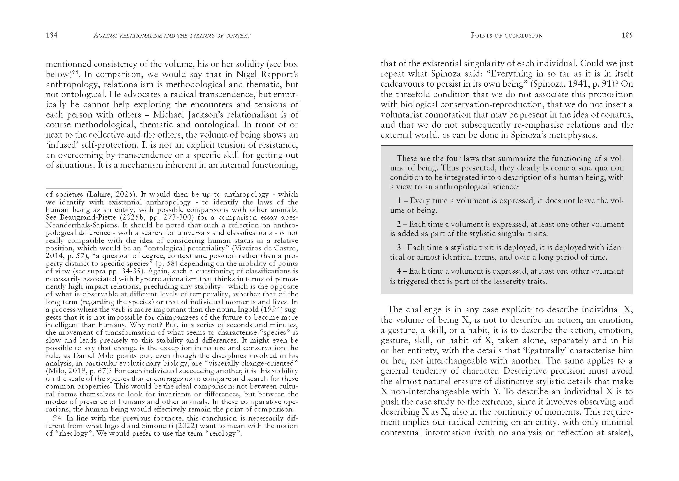 This book deals with anthropological ideas, which it confronts with what seems to be a difficulty in anthropology: the human being, each singular human being, taken in themselves. Following this line of reading, the authors take us from Benedict to Radcliffe-Brown or Strathern. They focus particularly on contemporary theories of ecological, psychological, phenomenological and existential anthropology. It is this last direction that the authors wish to emphasise, devoting a final chapter to what would be an anthropology of the human being. Radically critical of the relationalism and the tyranny of context in anthropological theories, this book combining text and drawings is a necessary document for researchers and students, as well as for all those interested in understanding the singularity of each being. Perhaps, after this book, readers will no longer consider anthropology in the same manner…