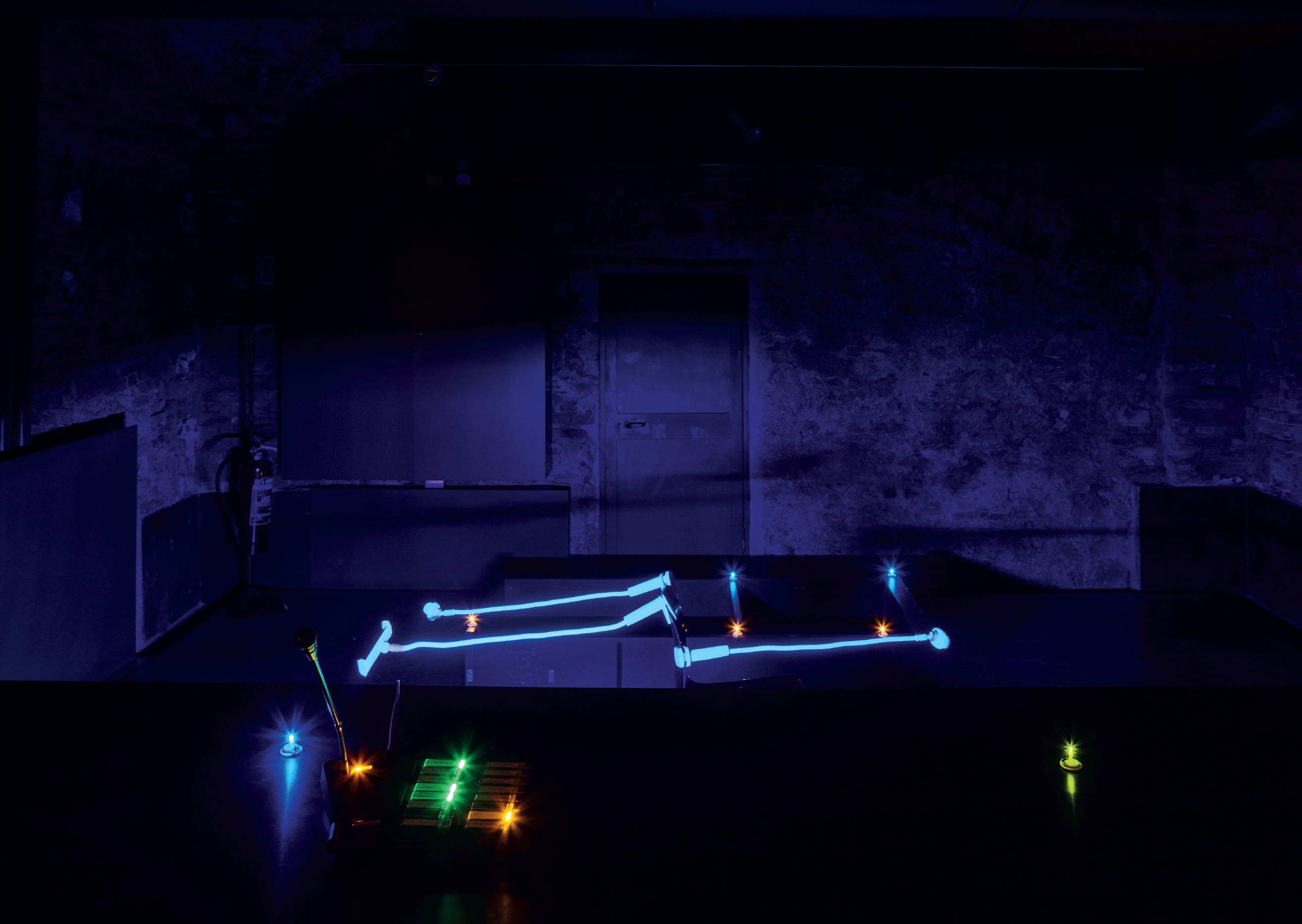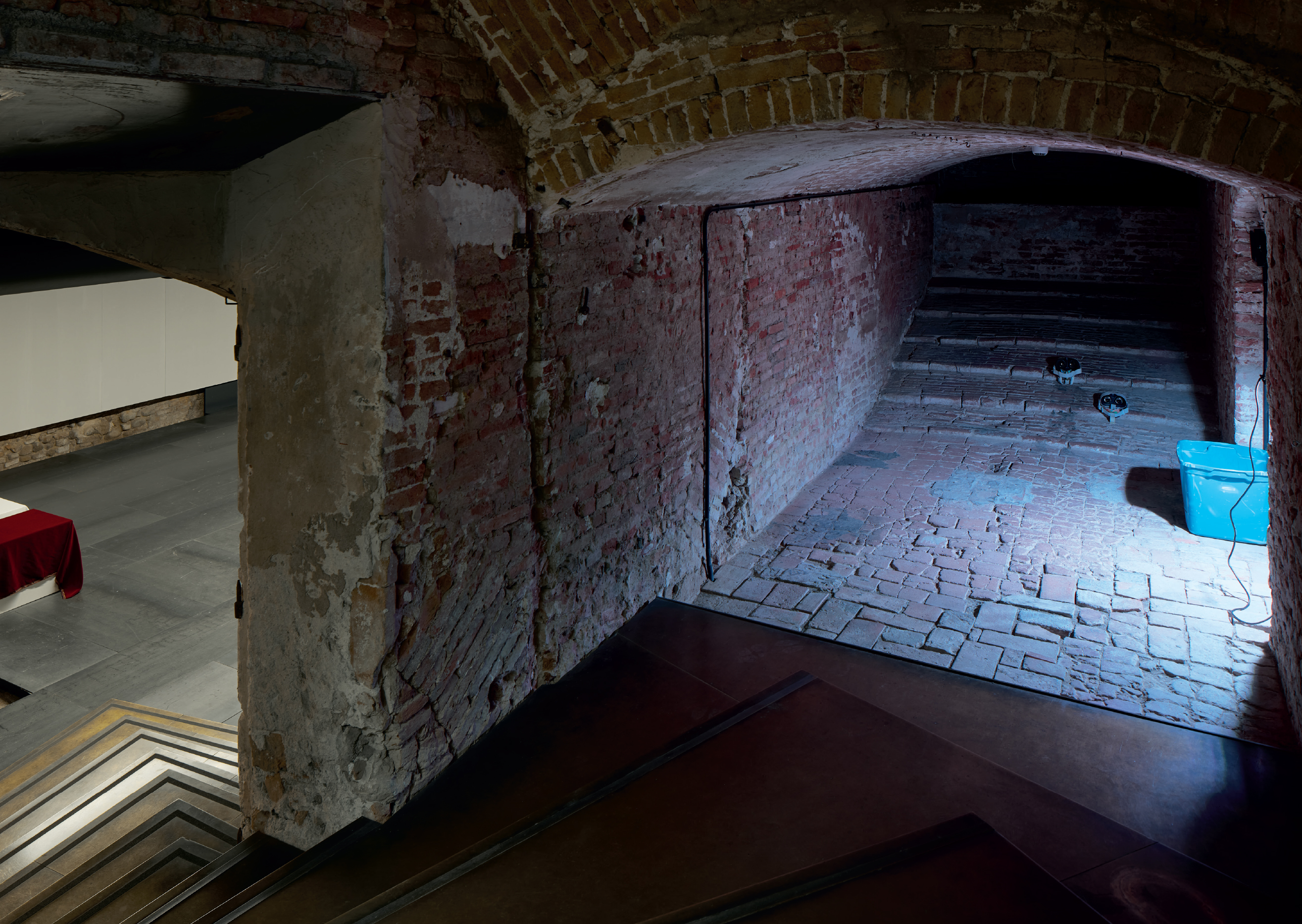 Conçu pour la crypte du palais, le projet traite l'architecture, la lumière et les objets comme un seul et même champ instable. Plutôt que d'utiliser l'espace comme un conteneur neutre, Smith travaille avec son obscurité, son irrégularité et sa présence infrastructurelle, produisant une séquence de seuils, de pauses et de zones de visibilité partielle.