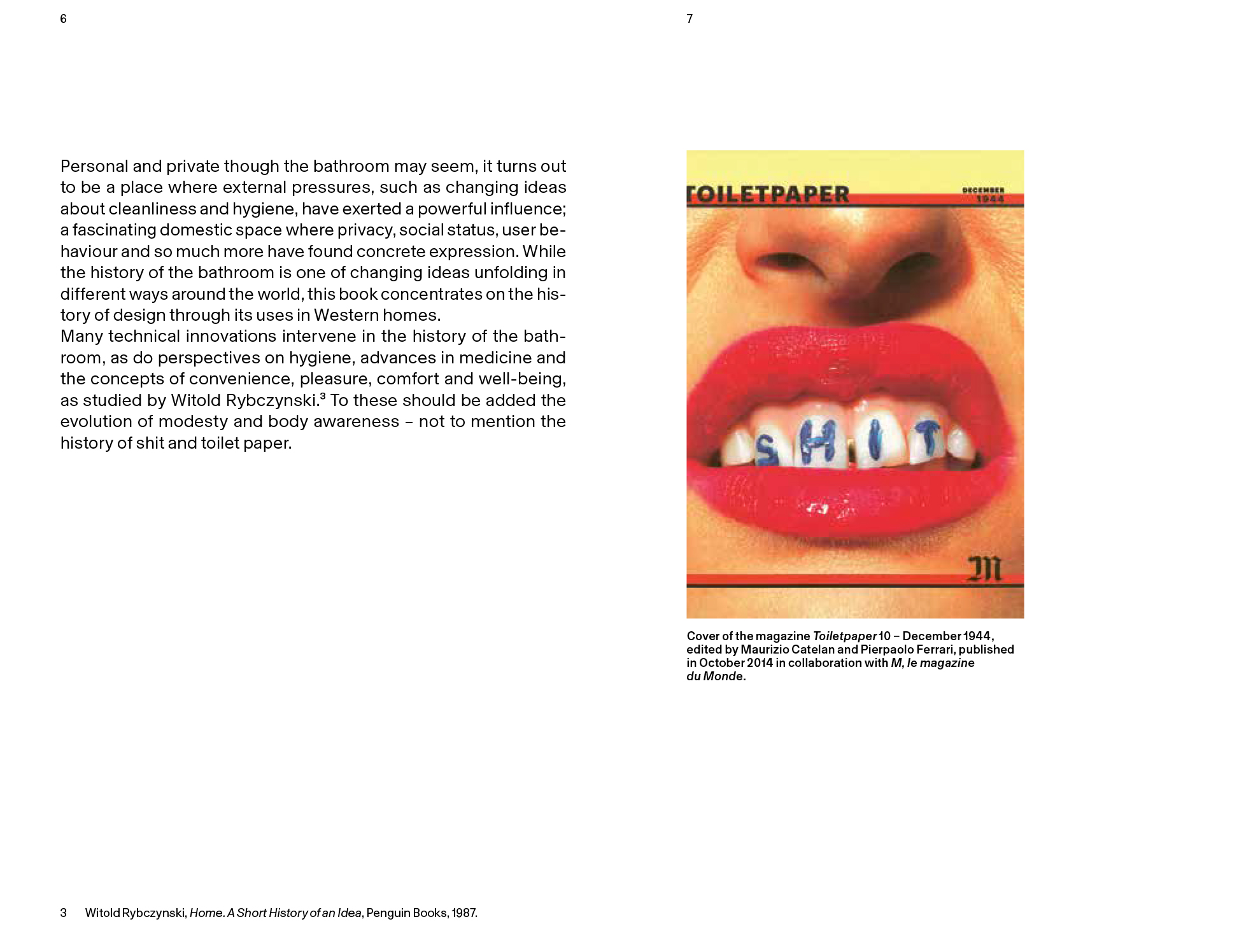 Dans le cadre d'une vaste réflexion sur l'habitat, abordant le design à travers ses différents usages et à partir de cas concrets, la conservatrice, urbaniste et historienne de l'art Jolanthe Kugler explore la dimension historique et sociétale des objets emblématiques de la salle de bains, mettant en lumière l'évolution des représentations liées à cet espace domestique apparemment banal.