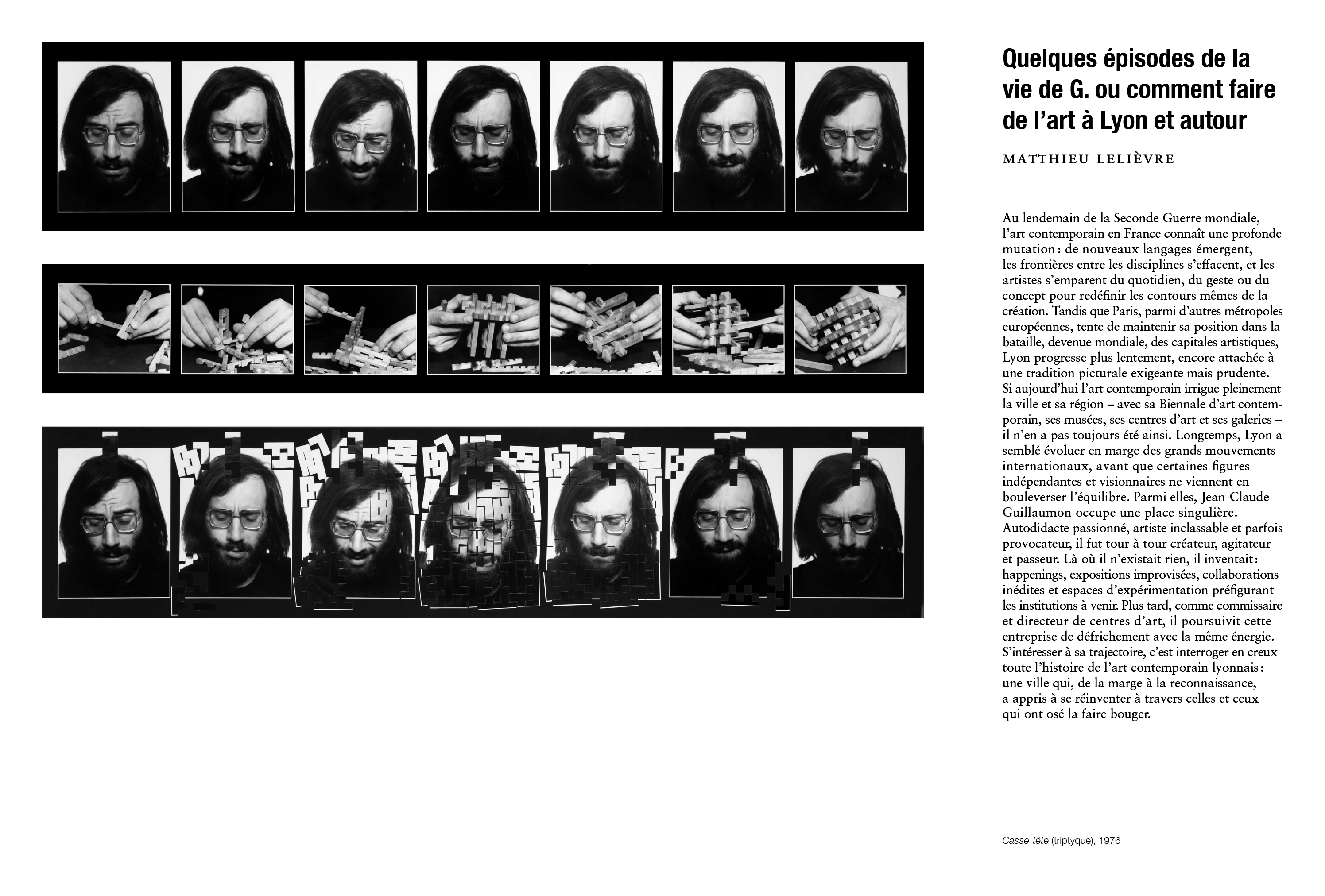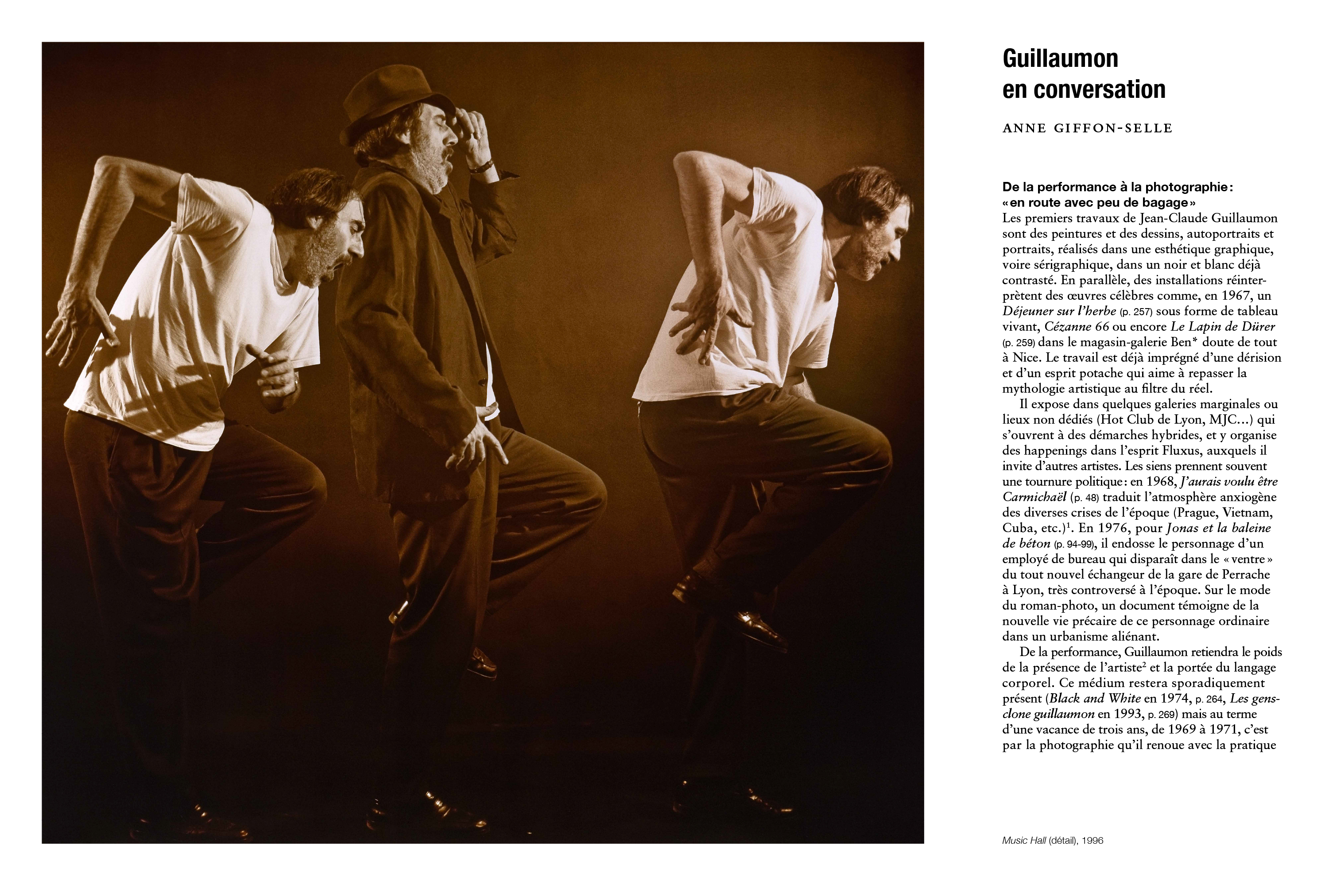 Anne Giffon-Selle, critique d'art, et de Matthieu Lelièvre, responsable de la collection du macLYON, et donne la parole à Jean-Claude Guillaumon à travers la publication de propos recueillis, revenant sur son cheminement artistique.