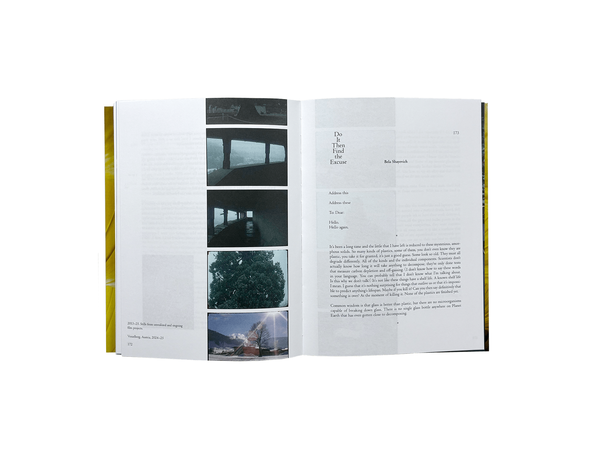 Le livre comprend un essai de l'écrivain et critique Kirsty Bell, une conversation entre Shirin Sabahi et l'artiste et ami de longue date Vijai Maia Patchineelam, ainsi qu'une réponse aux œuvres inachevées et en cours de Shirin Sabahi par l'écrivain et traducteur Bela Shayevich. Le livre revient également sur le tout premier appareil photo de Shirin Sabahi, transmis par sa famille : un reflex soviétique Zenit EM, cadre originel de sa façon de voir et appareil qui, avec son univers, a depuis disparu.