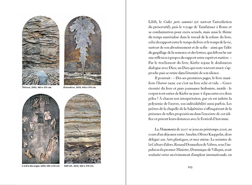 « Proche d'Anselm Kiefer depuis plus de vingt-cinq ans, étant son éditeur et ami, assidu de l'atelier, lieu favorable aux échanges multiples, mais aussi voyageant avec lui lors d'expositions ou autres séjours d'agrément, le moment m'a semblé favorable d'écrire sa biographie.