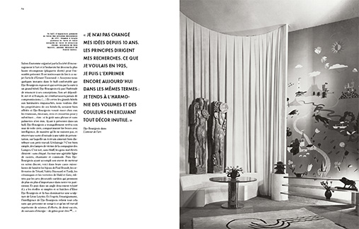 UAM (Union des Artistes Modernes), fondée en 1929. Il résiste cependant à la scission avec la société des Artistes Décorateurs. Moins dogmatique tout en étant fondamentalement moderne et innovant, il produit un mobilier en métal, verre, ciment et bois. Ses intérieurs minimalistes lui sont inspirés par une volonté graphique affirmée, portée par des compositions de volumes fonctionnels et polyvalents.