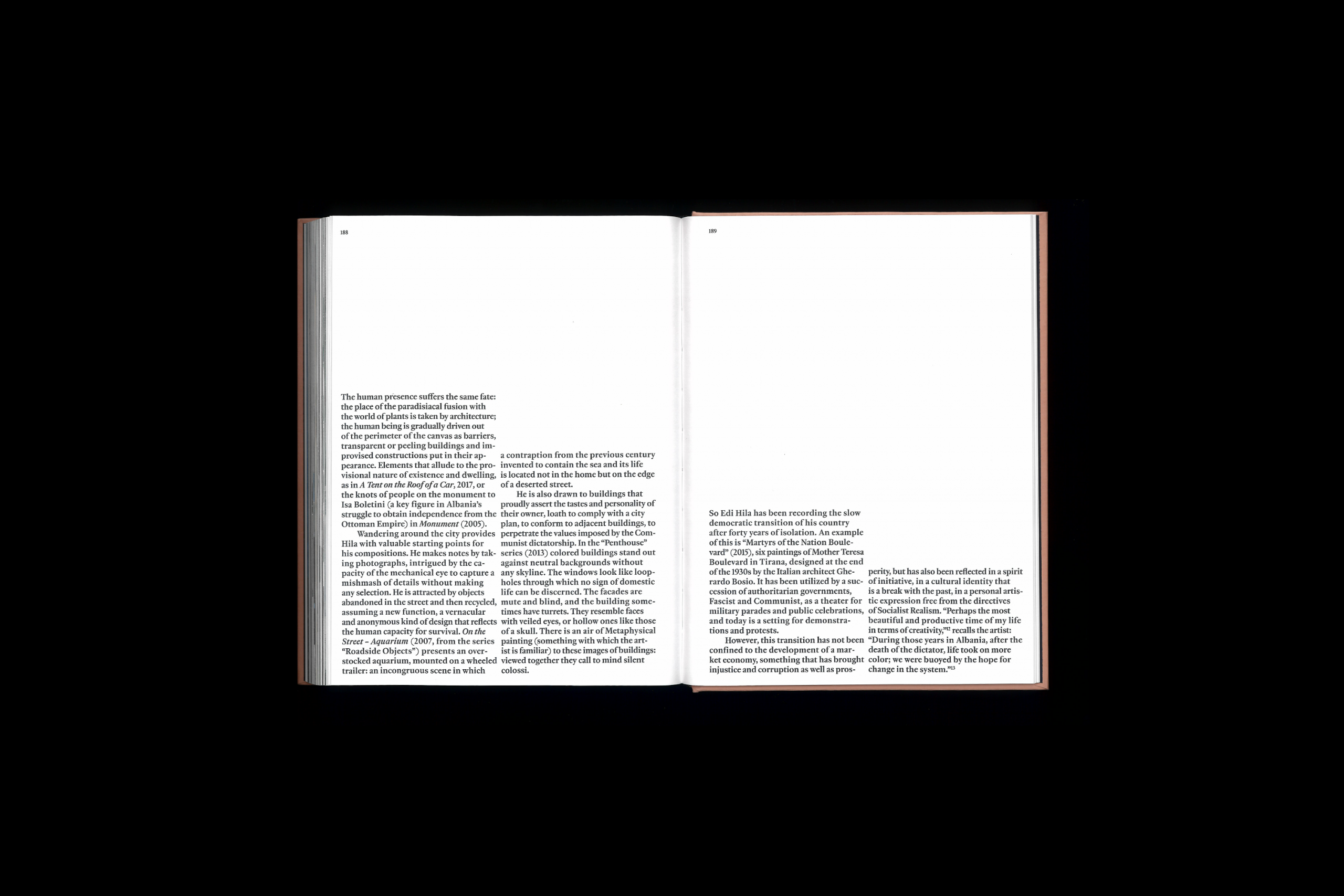 This publication, conceived by museo Madre, is more than a simple book; it is an artists' book in which Anri Sala interacts with the corpus of paintings by Edi Hila. As Eva Fabbris, the Director of museo Madre, points out in her brief essay, Sala engages Hila's work in a contemplative and cinematic way, allowing the historical and political consciousness the two share to surface gradually through the sequencing of images.