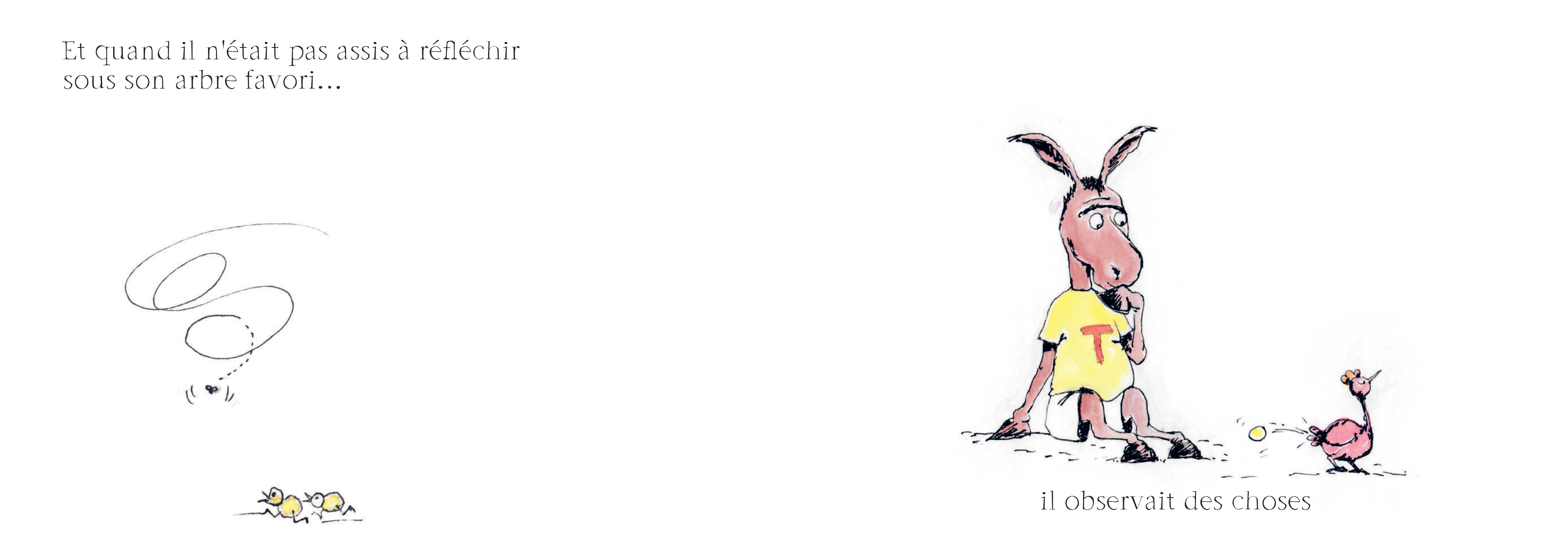« J'avais de la peine pour ces ânes et je me suis demandé d'où pouvait venir leur réputation de stupidité. N'est-ce pas simplement parce qu'ils sont des animaux obstinés qui ne choisissent pas toujours d'obéir à leurs maîtres ? Les ânes d'Artur, eux, semblent plus intelligents que les hommes qu'ils remplacent. Beaucoup ont l'air de philosophes méditant sur les questions de notre existence. Ils ont aussi l'air bien seuls. Que doit-on ressentir quand le monde entier vous utilise comme symbole de la stupidité ? Alors j'ai commencé à imaginer un âne qui voudrait savoir des choses, un peu comme un enfant veut savoir des choses. Un âne animé d'une curiosité irrépressible pour la vie, mais prisonnier de ce que les autres perçoivent comme étant sa nature. Et bien sûr, ce sont les enfants qui le sauvent, car ils n'ont pas encore intériorisé ces préjugés issus du monde des adultes. »