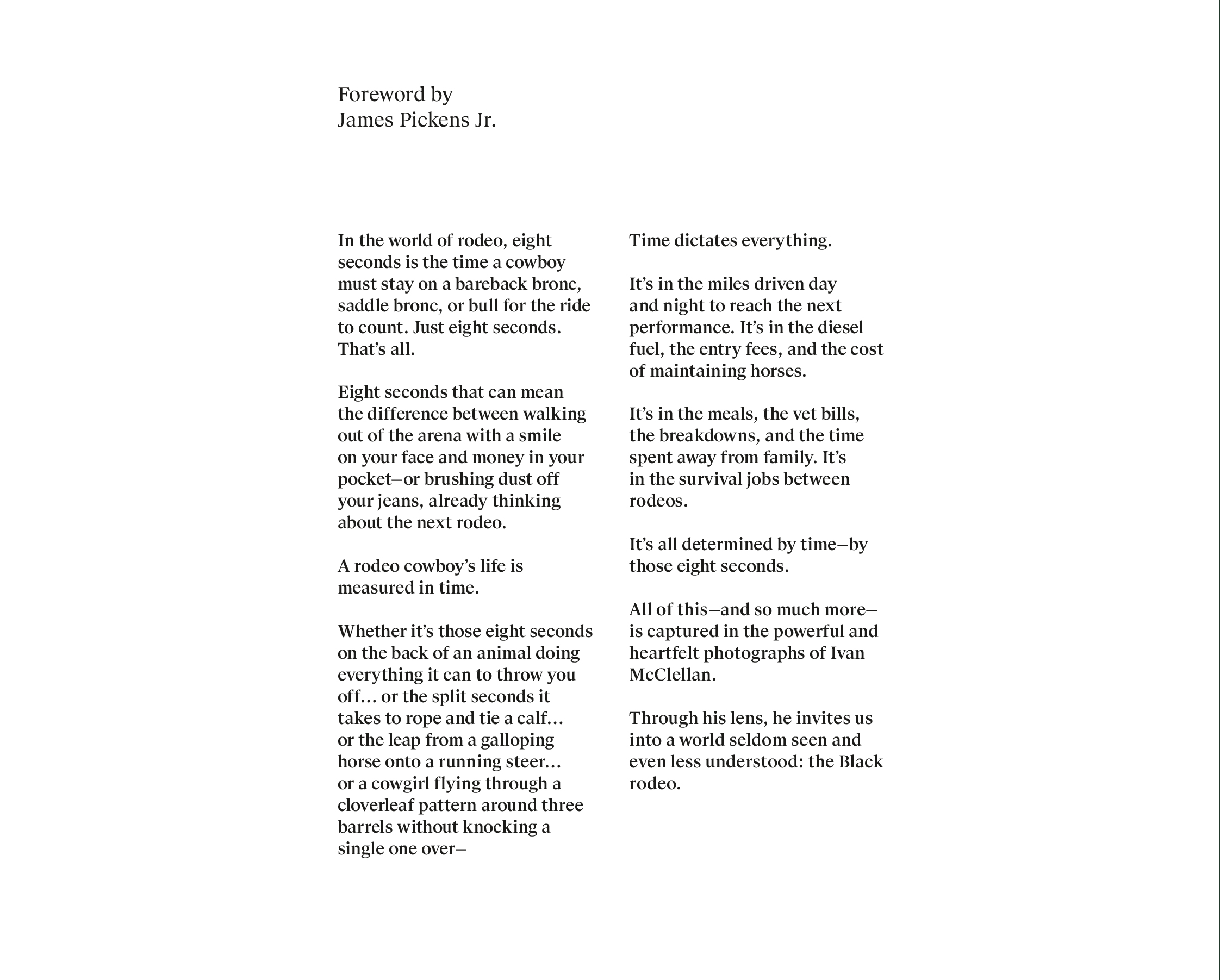 Après le succès éditorial en 2024 du premier livre Eight Seconds – Black Rodeo Culture, cette deuxième édition propose un nouveau séquençage des images avec 91 clichés inédits, une nouvelle introduction et une préface.