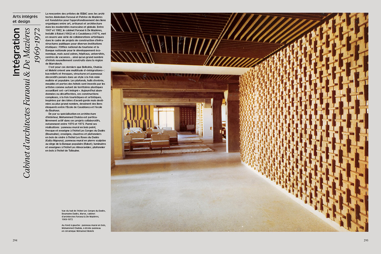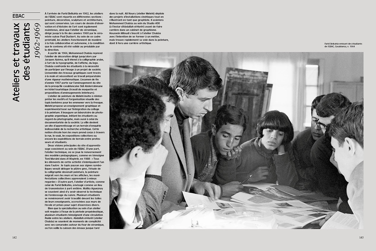 Bert Flint, Pauline de Mazières… Il rassemble un grand nombre d'auteur·rices impliqué·es dans l'écriture de l'histoire culturelle marocaine (Salma Lahlou, Léa Morin, Khalil M'Rabet, Katarzyna Pieprzak, Kenza Sefrioui…). À travers essais, archives et entretiens, cet ouvrage documente et analyse les activités et l'héritage de cette constellation d'artistes engagés dans plusieurs domaines complémentaires (peinture, photographie, fresque, arts appliqués, typographie, design graphique, scénographie) ; ainsi prendre la mesure de leur importance pour une histoire des arts postcoloniaux.