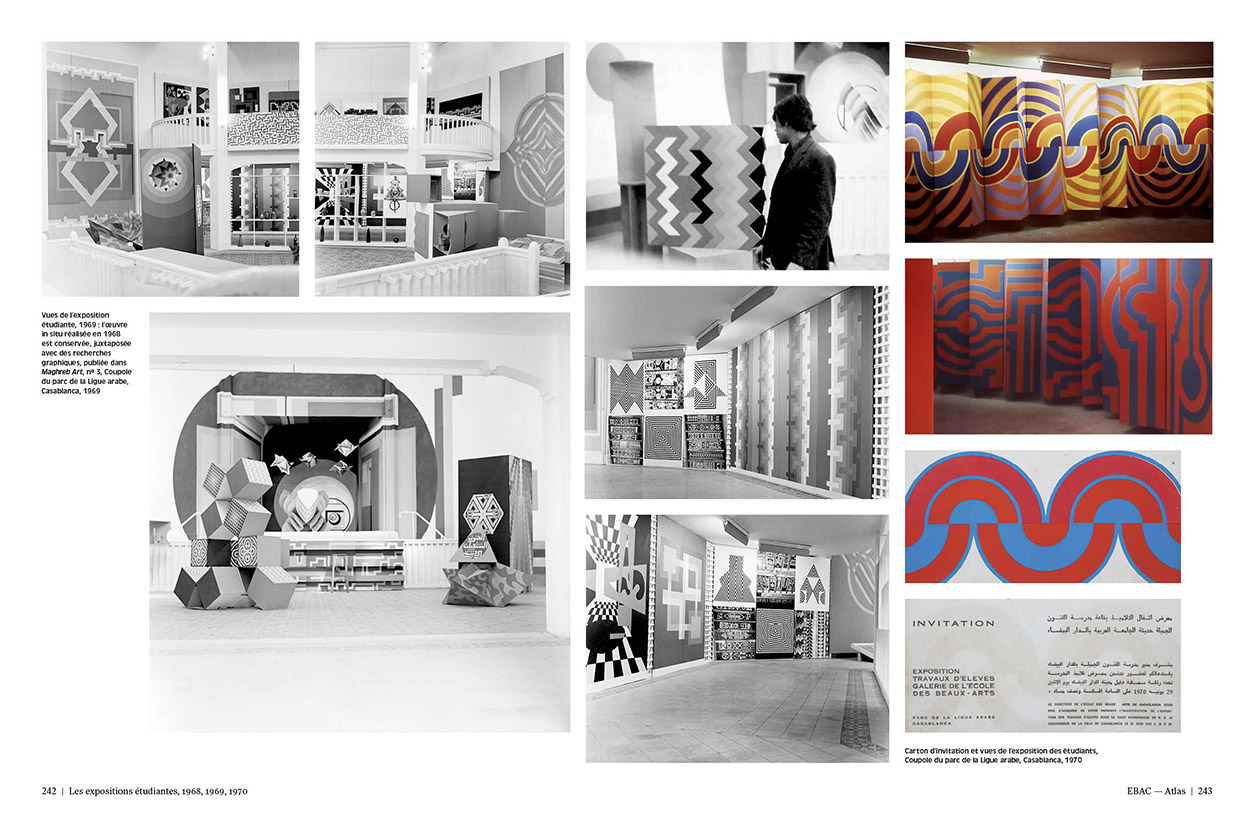 Bert Flint, Toni Maraini, Mohamed Melehi ), toute une constellation d'artistes-militants puise dans un héritage à la fois marocain et afroamazigh au service d'une nouvelle abstraction. Introduisant l'art dans la vie quotidienne, ils utilisent peintures, affiches, magazines, design d'intérieur, fresques murales, expositions de rue, et cultivent également des solidarités politiques avec d'autres pays d'Afrique, d'Amérique du Sud, etc.